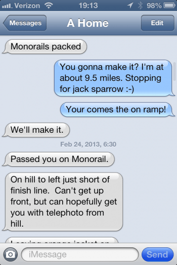 In addition, Find My Friends helped my family as they passed me while riding on the monorail between the Polynesian Hotel and the finish line area.