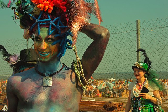 This made me realize once again how unique the Mermaid Parade actually is–because the point of the event is to celebrate artistry, creativity, and the body in all of its permutations of shape, age, color, gender, preference, and clothed-ness. The Mermaid Parade is a no fat-shaming zone, a pagan bacchanal of the body glitterati, a chance to actually become whomever you want, no holds barred.