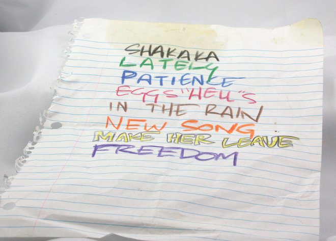This is a genuine playlist from a ska concert my husband played in fifteen years ago. The guy who wrote the list sadly died recently from a brain tumor.