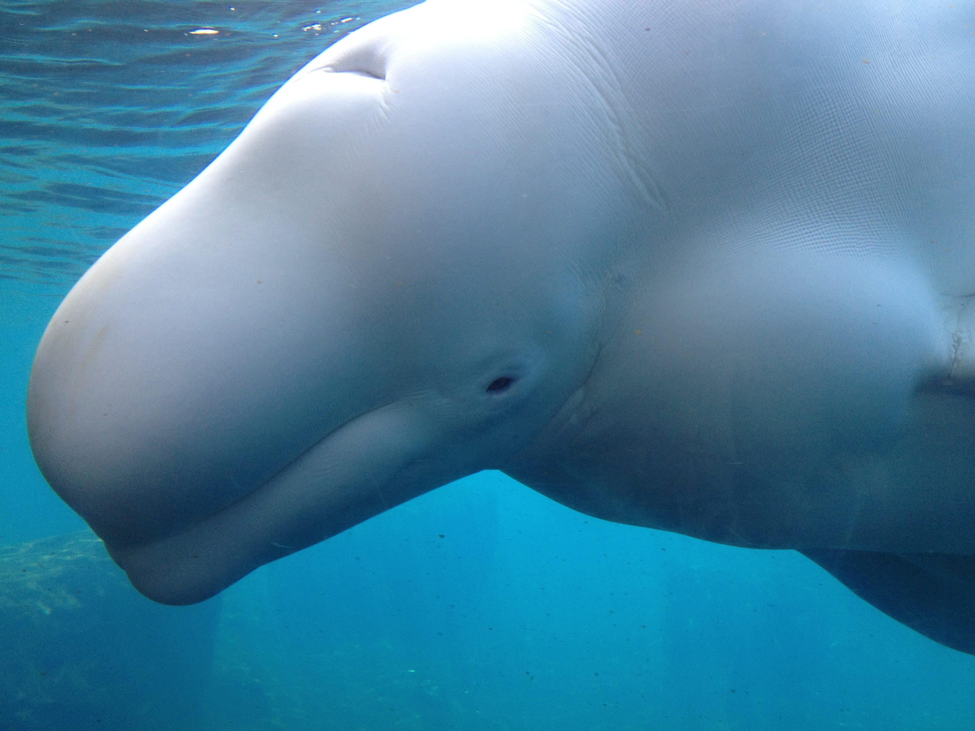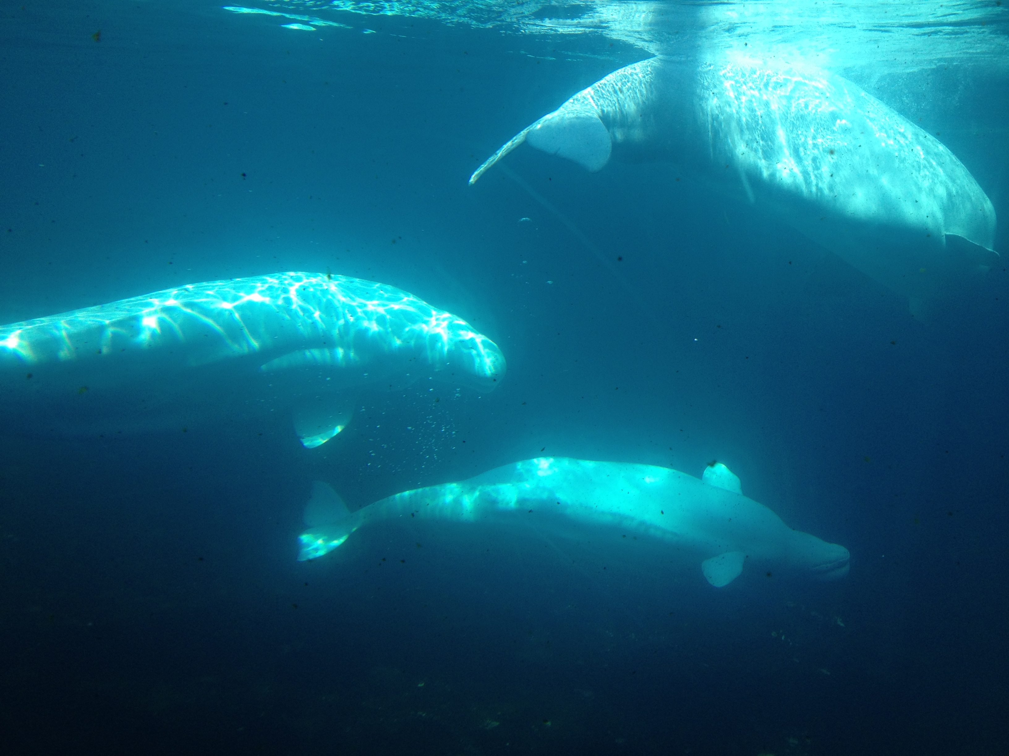 It’s absolutely incredible to watch these creatures swim. But what’s more incredible is that you can view them underwater, from several areas around the tank. The whales seem to welcome their onlookers, frequently turning around in the water to look back at them. On my last visit, I put my hand flat on the outside of the tank and a beluga not only bumped where my hand was on his side of the tank, he followed my hand as I moved it downward, as a cat might follow a string.