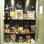 Kim: We’re using one display case to showcase staff geeks—a new one every two weeks. That’s been a lot of fun, seeing what else everyone puts in the case. Batman was the focus of my display, since that’s what’s on my Geek the Library poster, but I wanted to share all my passions. I love the concept of I-Spy books, which make you study the whole page. I’ve done other I-Spy style displays and it seemed like the perfect format to make anyone who glances at the case see everything. I collected a bunch of different stuff from home, then spent three days staring at it, trying to come up with rhymes. The final stanza directed people to go find my poster. It’s full of a sampling of my action figures, dice I use in RPGs, Legos, some Skylanders and Webkinz, and, of course, lots of Batman books and videos. Lots of colorful objects. I even included the Foldable Me I won from one of your contests. The case is in the front lobby, and circulation staff say lots of people stopped to look at it. Mission accomplished!