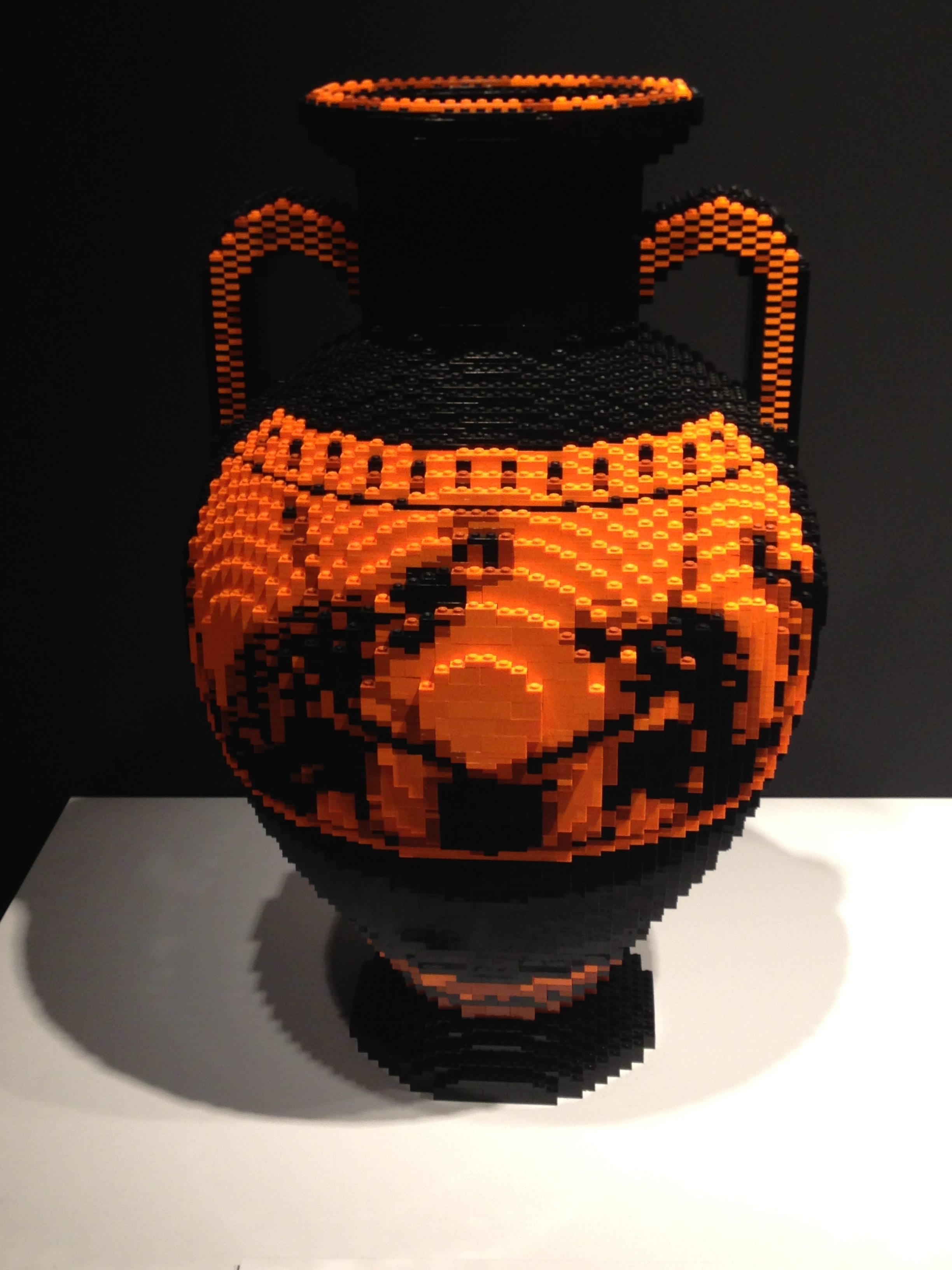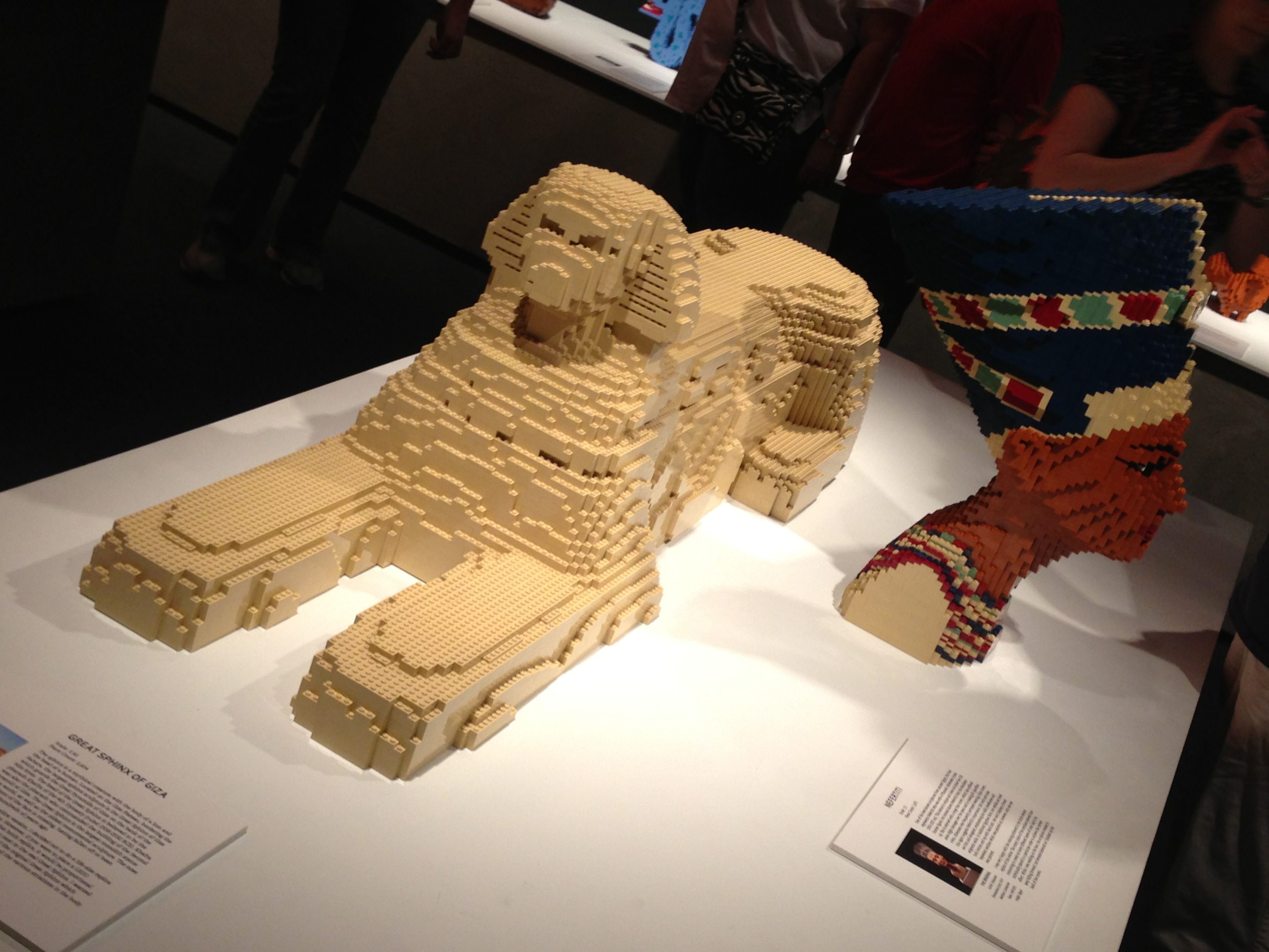 The next room was filled with just as much history as the first, with art from ancient Greece, Africa, and Egypt. The largest sculpture in this room, though, and the one that got the most attention from both adults and children, was a head sculpture from Easter Island, also known as the Moai. This piece took over 75,400 pieces to assemble and the 1:1 scale was impressive. At one point while gazing up at the many tiny bricks used to create curves and smooth lines, it occurred to me: There’s a lot of history to be learned in both these rooms and I can’t think of a more engaging way to expose kids to it than with Lego bricks.