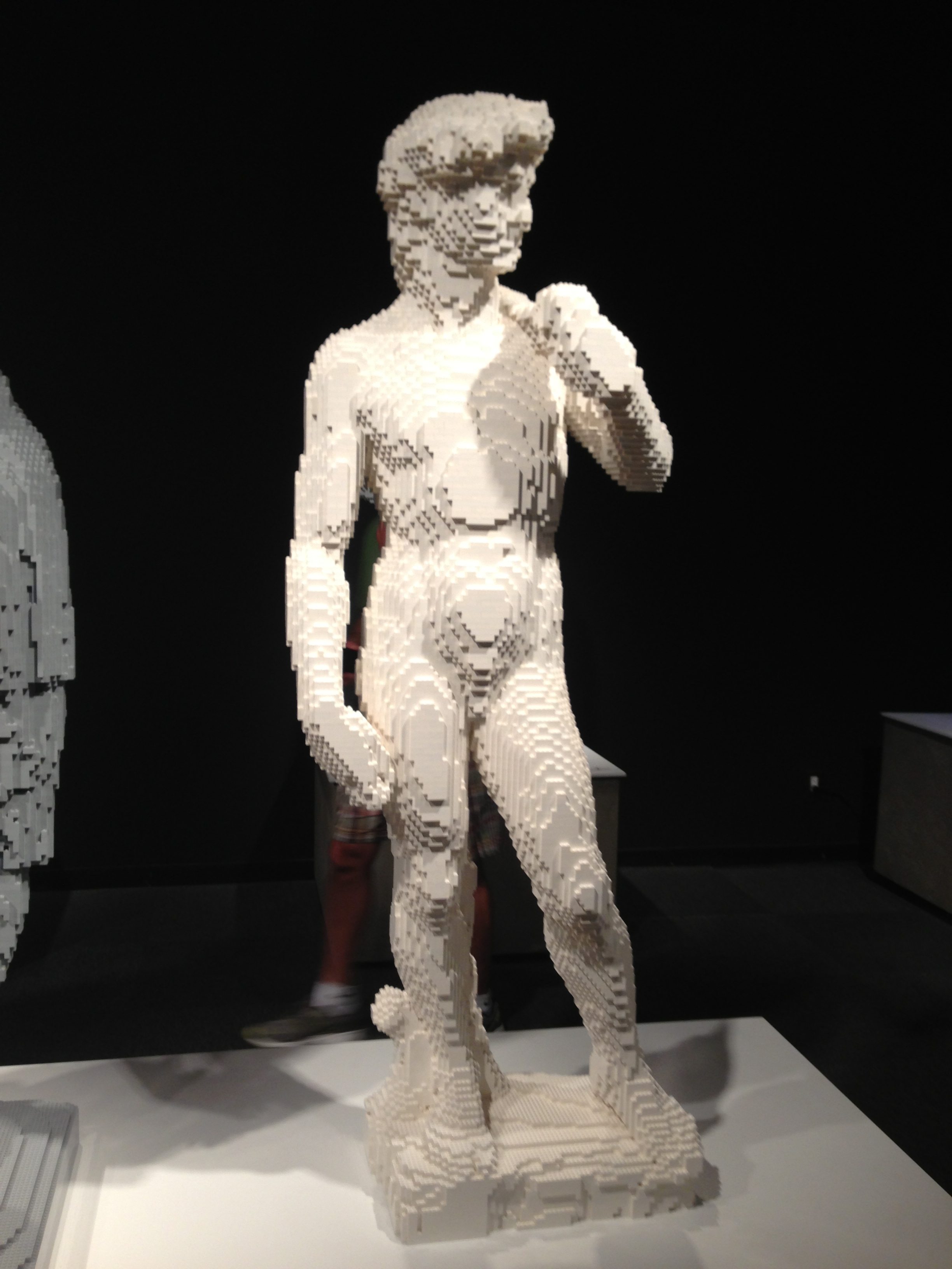 Something else I found interesting about Sawaya’s art was how he made use of classic paintings and art and reconstructed them in Lego bricks. The first room in the exhibit actually features art from the Renaissance period, with Lego versions of the Mona Lisa as well as a segment of the Sistine Chapel (protip: look up, or you’ll miss this one). This is one of the rooms children might want to rush through, but I would recommend taking the time to show them each piece of art and the neighboring image of its real-world counter part.