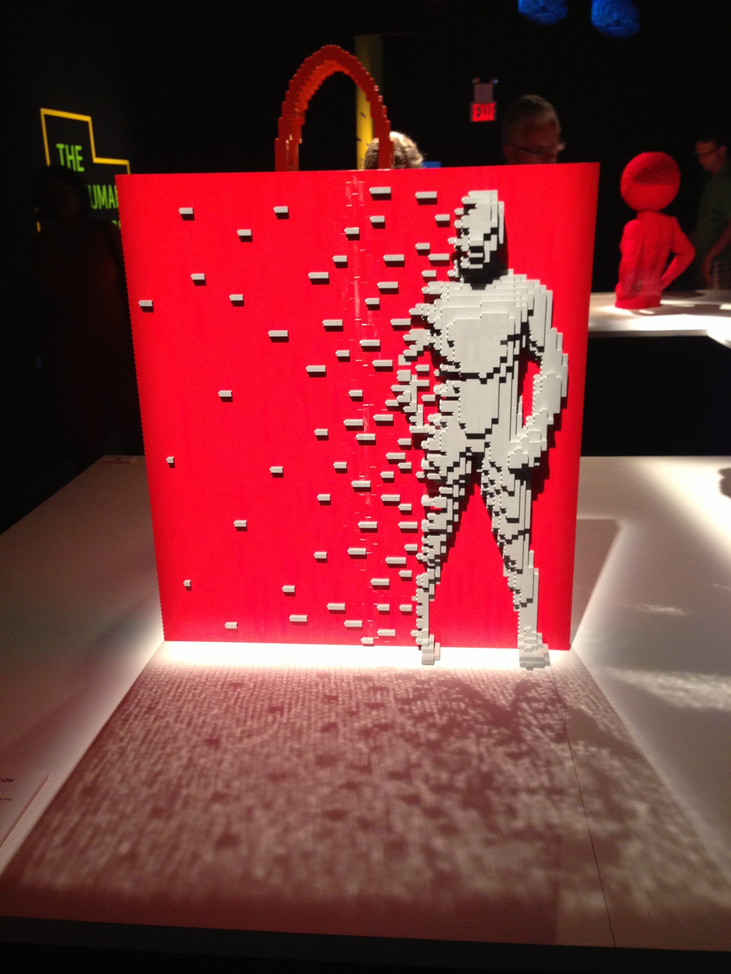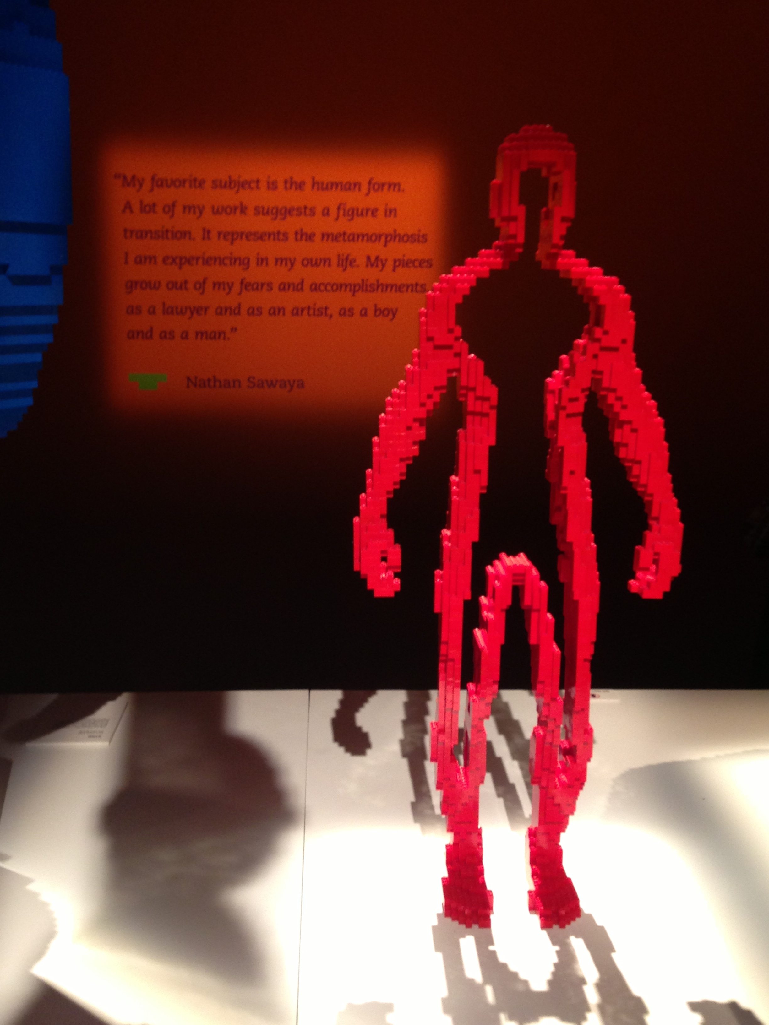 The last sculpture in the exhibit is actually a hands-on-experience: You’re given the chance to write your name on a Lego brick and place it on a giant sculpture. When the exhibit closes in January 2014, Nathan is going to take all the Lego bricks and refurbish them for a new project and any of the Lego bricks he doesn’t use will be donated to charity.
