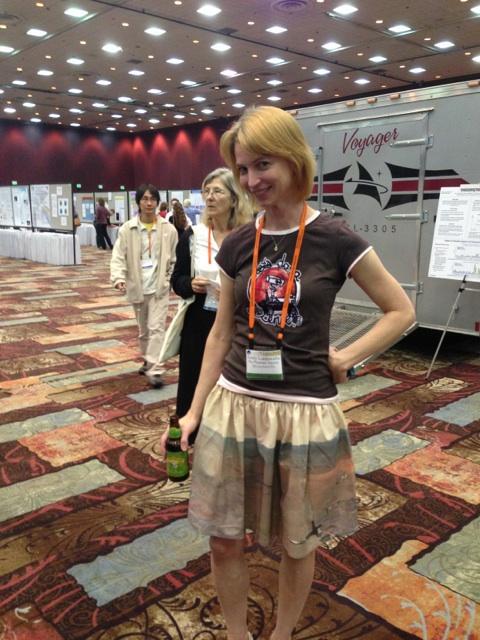 Emily Lakdawalla, blogger for The Planetary Society, wore this awesome Mars Rover skirt from Etsy shop Go Follow Rabbits at last year’s annual meeting of the Division for Planetary Sciences of the American Astronomical Society.