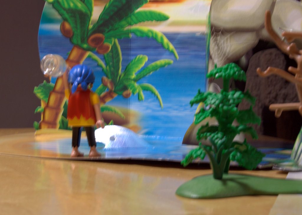 There’s a beach, some foliage, and the sea—not much else. The Pirate throws a message in a bottle and hopes for rescue.