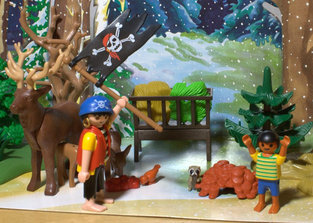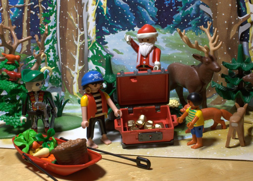 What happens when Pirate and Christmas Playmobil Advent Calendar lands collide? Well, in the case of the Advent Calendars I found for my kids (Playmobil Forest Winter Wonderland and Pirates Treasure Cove), my husband decided to make a photo story out of the treasures that were opened each day. Come join us as the Christmas and Pirate Playmobil Advent Calendars are opened and hi-jinks follow…