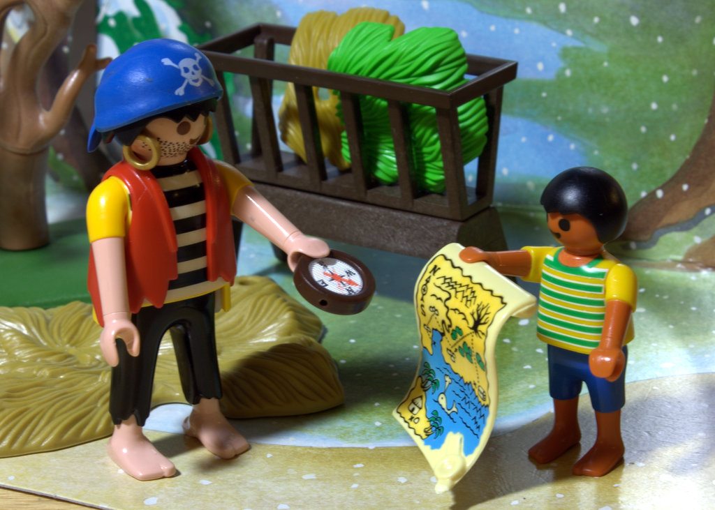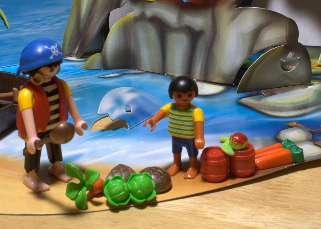 Little Pirate has a map and a compass! Too bad it doesn’t lead to food; the pirates are getting hungry and this hay doesn’t sound good.