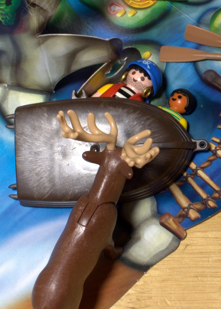 …until Daddy Deer finds out. RUUUUN! The pirates hide under a derelict boat.
