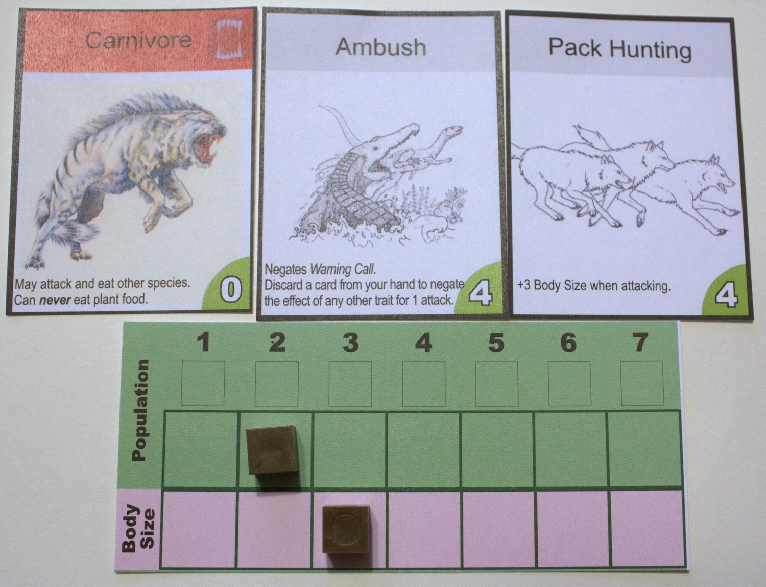 The traits that were available to choose from made for some interesting word problem-type situations for players of carnivorous species. If the carnivore has X or Y traits, then it can attack this other species. If doesn’t, it can’t attack. If the species is bigger than the attacking species, it can’t be attacked. Some of the examples can be seen in the slideshow above.
