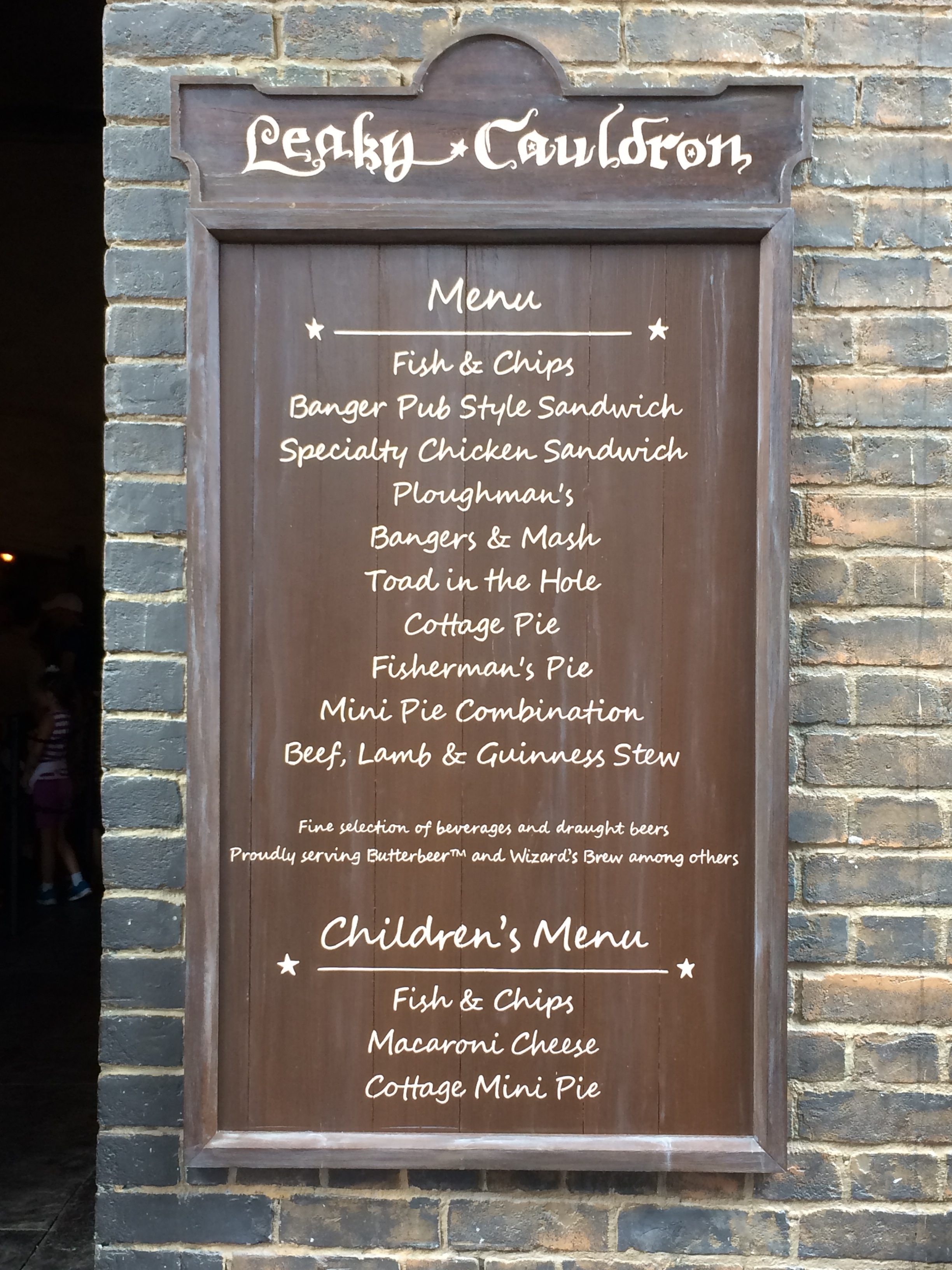 Wit the exception of the menu, the Leaky Cauldron has all the feels of the Hogshead over at Hogsmeade.