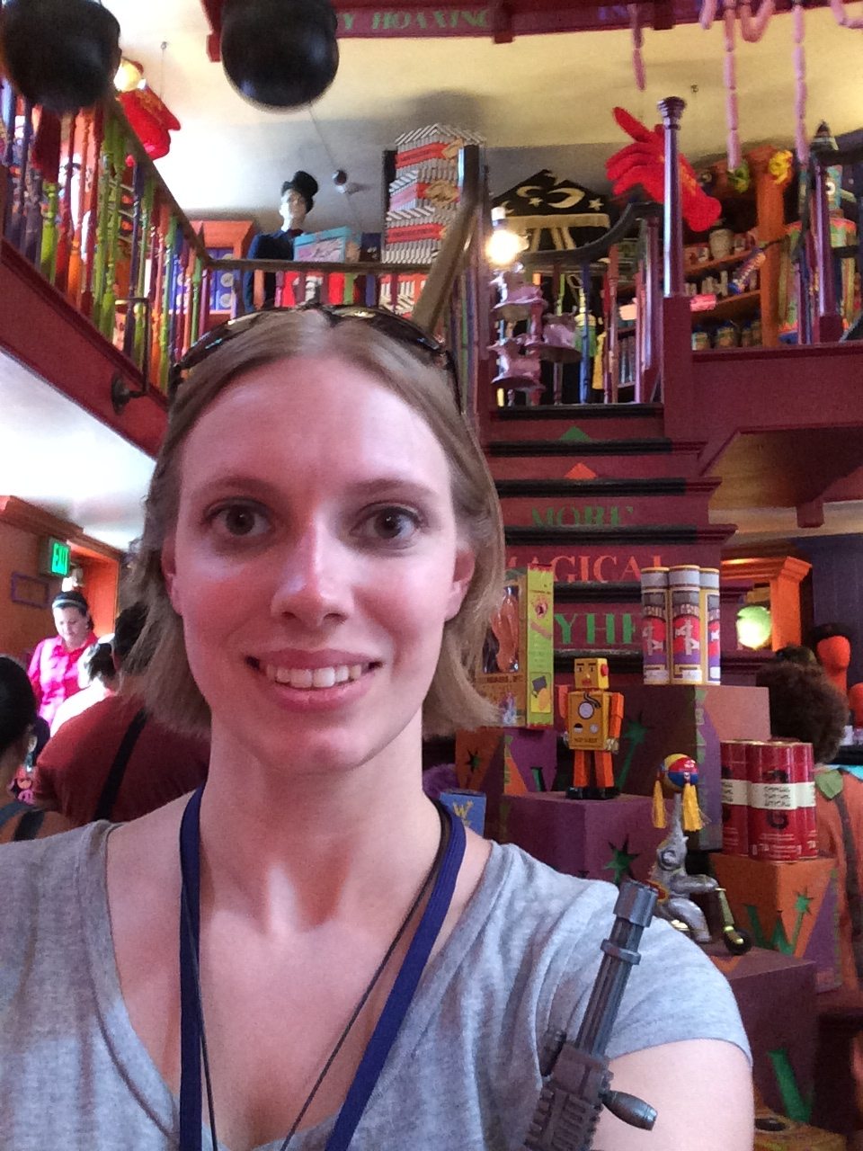 Weasleys’ Wizard Wheezes has a really cool store front and if you watch it long enough, you can see Fred (or is it George??) make a rabbit appear on his head. Inside the store you can find all manners of jokes to play on your friends, including some suspicious looking candy. If you can crane your neck and look up, you can see the magical sun roof put on a display of fireworks.