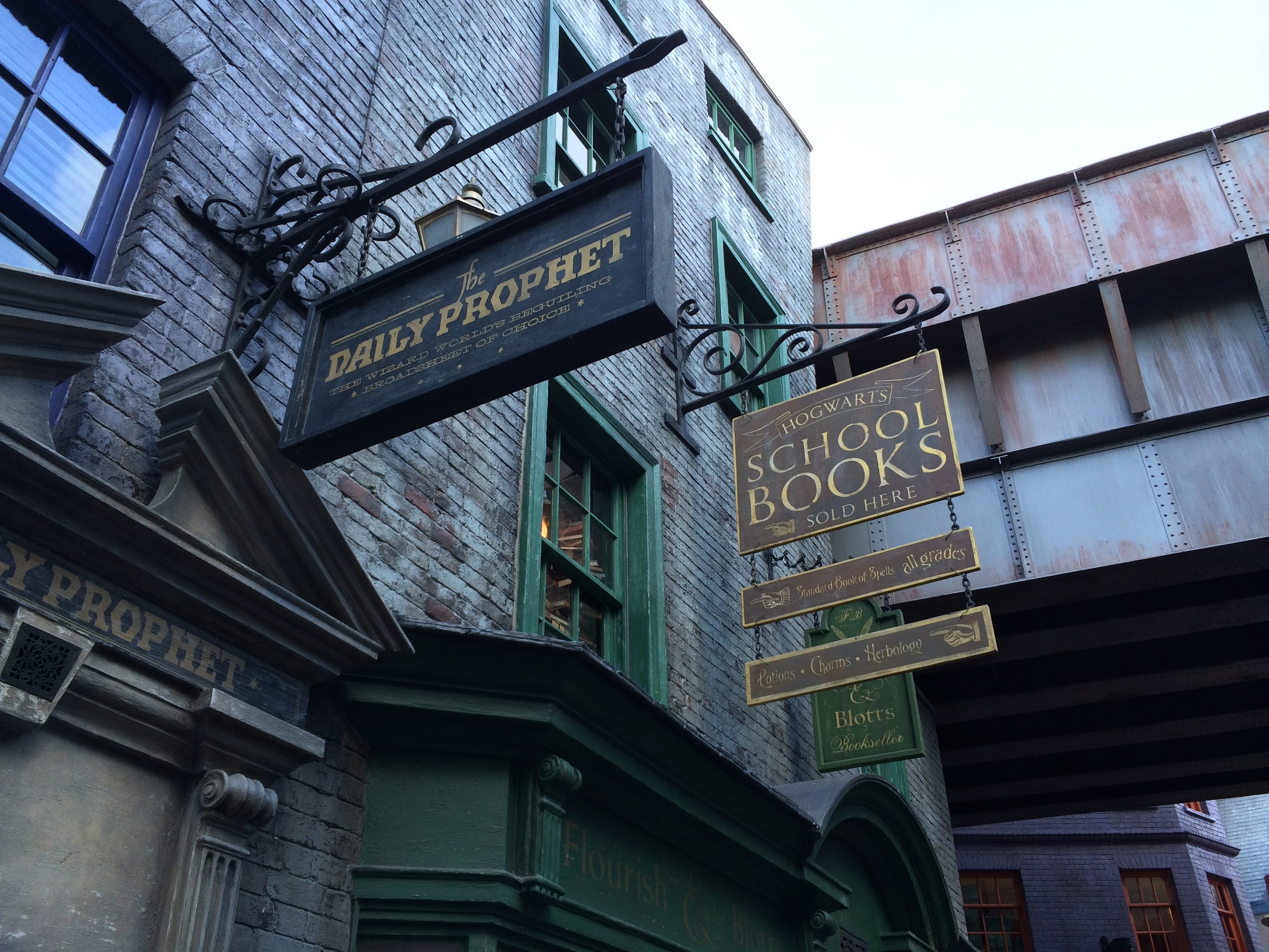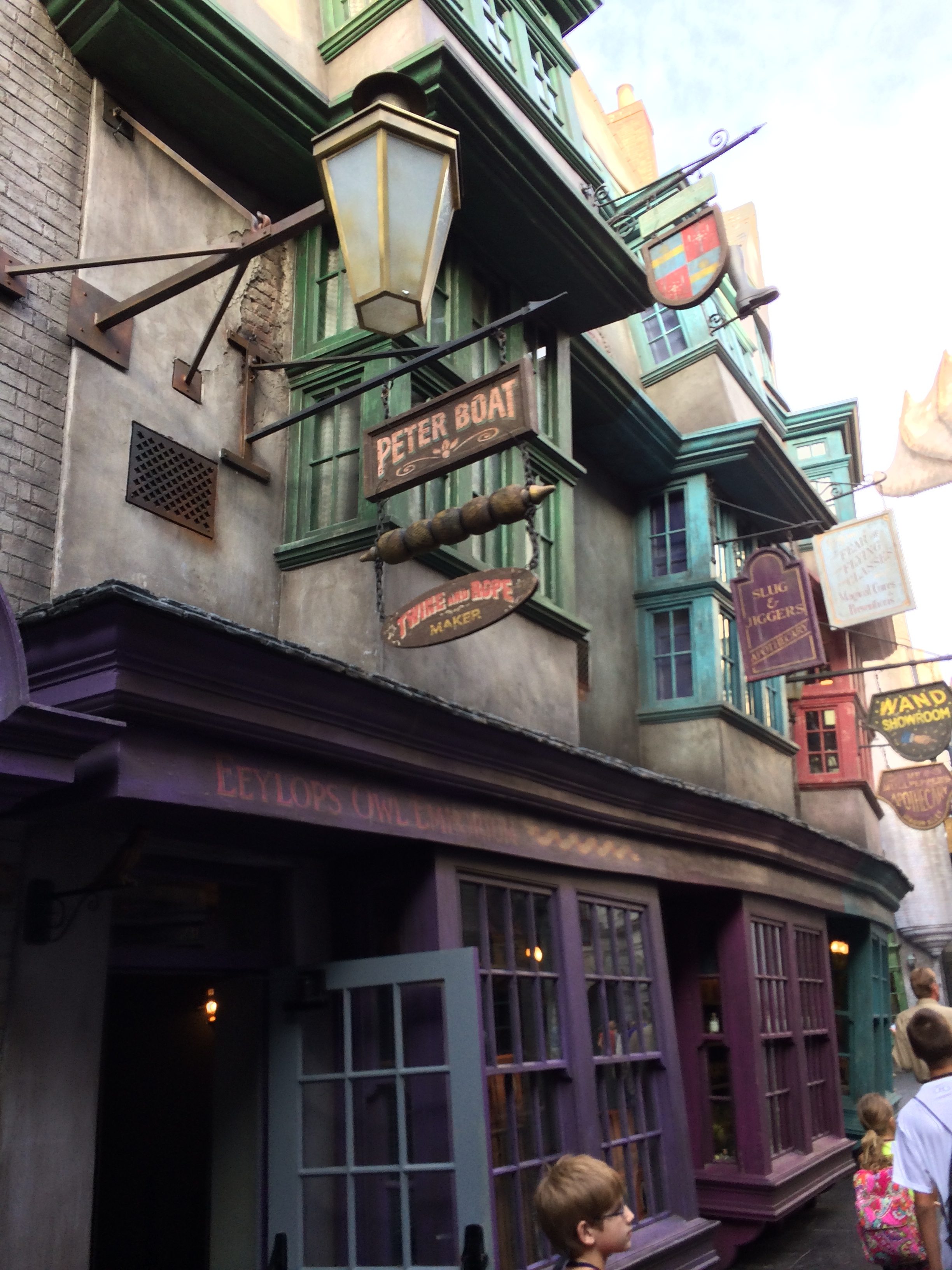 Today I had a mom at my library looking to get the first HP book for her 9 year old daughter. She seemed rather concerned the book would be too much for her– which was kind of a refreshing change from how many people insist their five-year-olds can read it– but I knew it would be all right particularly when the mom said the girl had fallen in love with the world already from the movies and most especially from a recent family trip to Universal. The mom– she had no interest in reading the books herself, kind of blew off the whole concept of them if it wasn’t for her daughter’s enthusiasm– but she said even she loved Diagon Alley (which she wasn’t sure how to pronounce): ” I had no clue about any of it, but it’s like walking into another world!” I am thoroughly jealous, and hope that it’s still there by the time we finally get around to going!