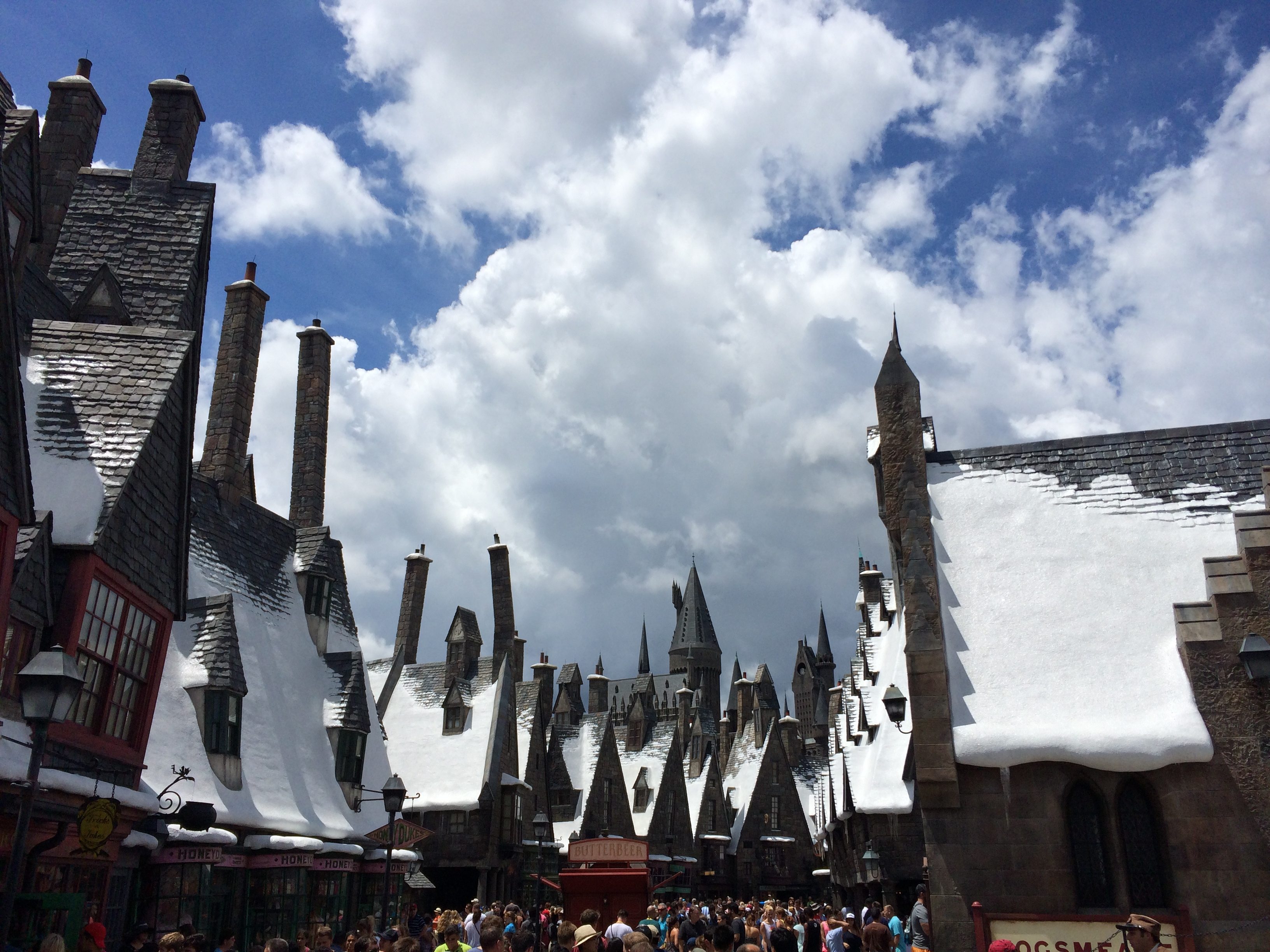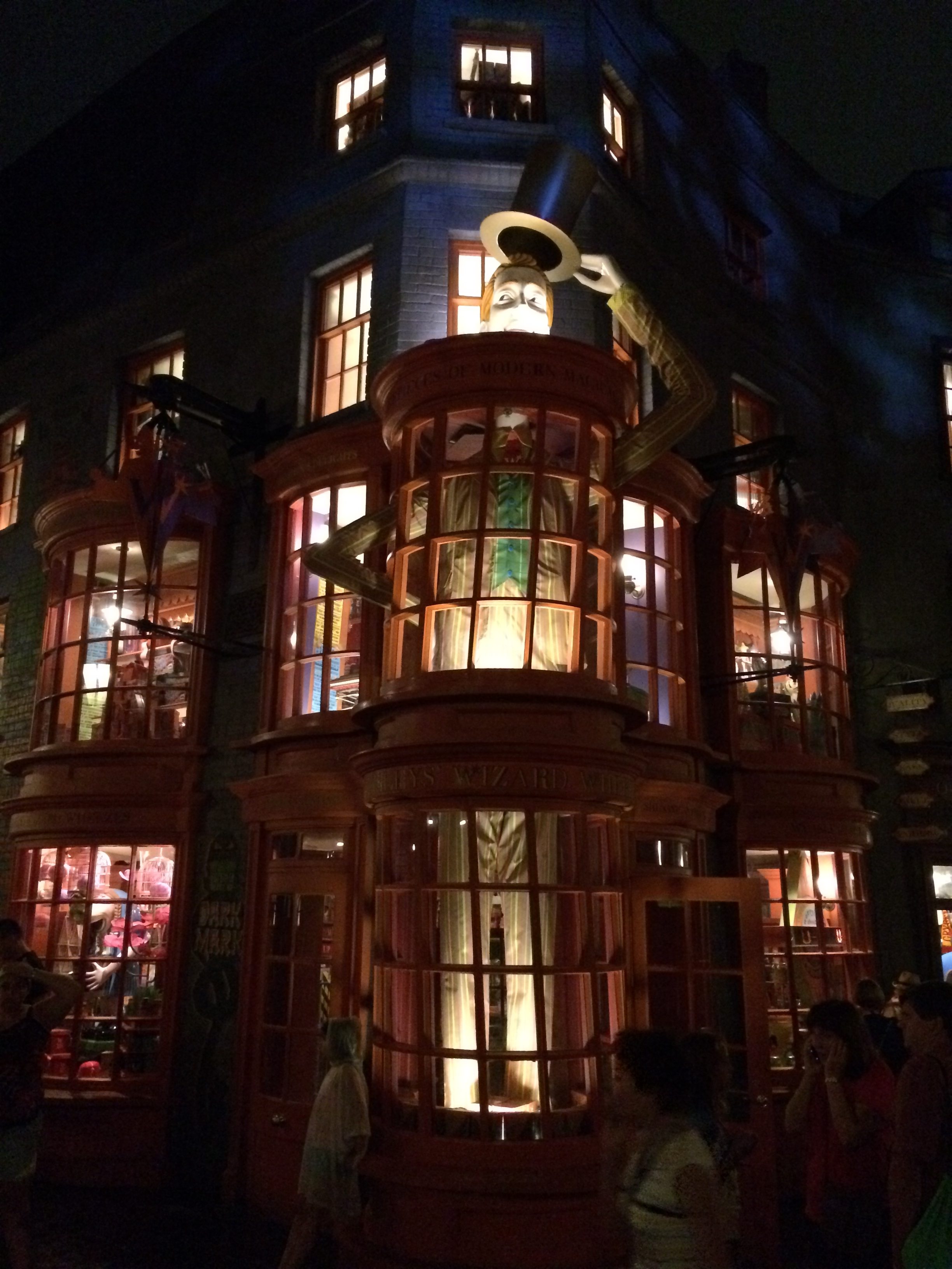Something that’s new to both Diagon Alley and Hogsmeade are the interactive wands. For around $40, you can purchase a wand that will interact with various areas in Diagon Alley and Hogsmeade. Most of the spell-casting areas are marked with a gold medallion in front of the jinxed artifact, while others you learn about through talking with the local wizards and witches. My favorite spell to cast is “Aquamenti” at the Mermaid fountain and “Metelojinx” at the Umbrella outside the restrooms.
