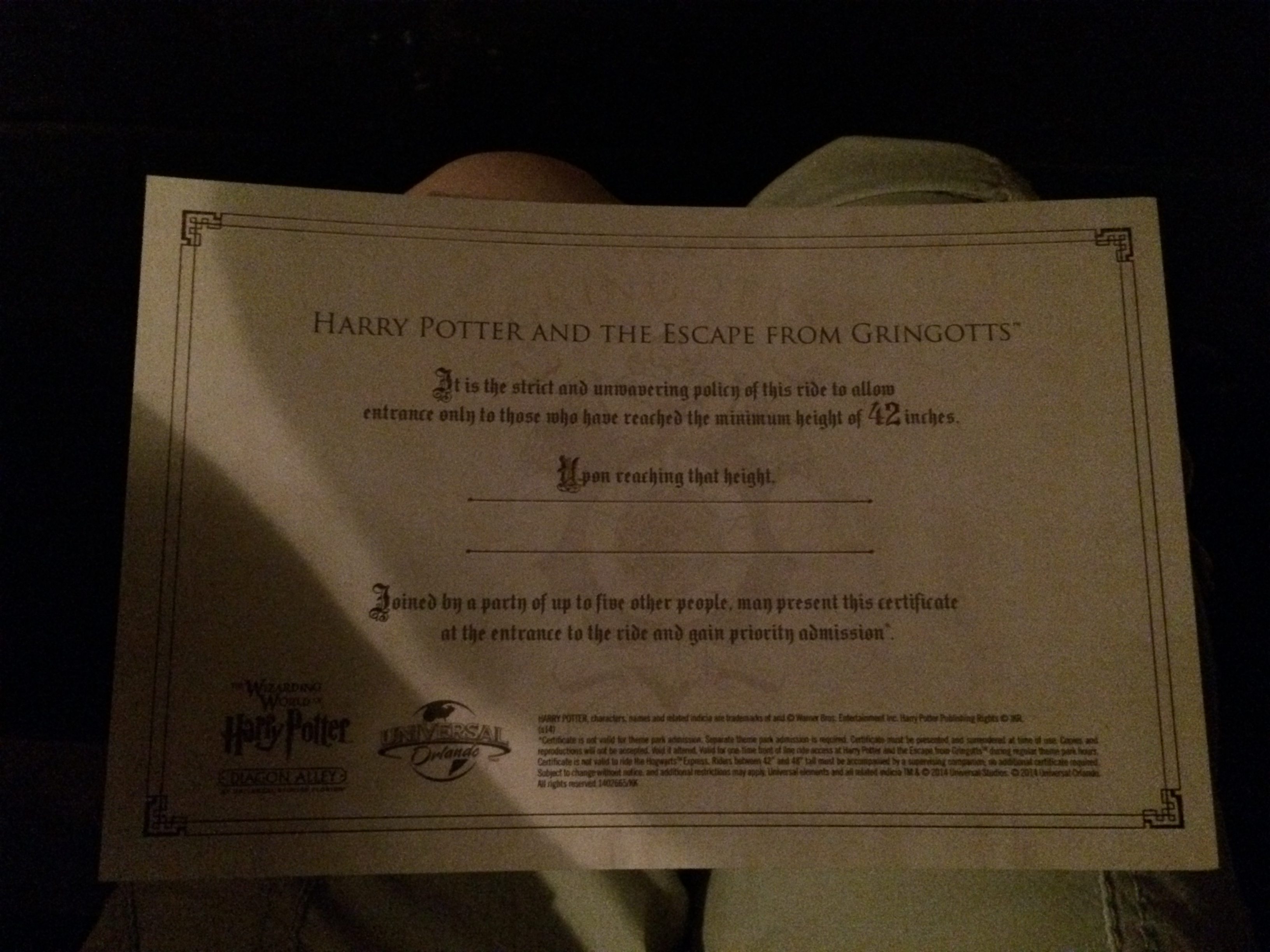 If your young witch or wizard does not meet the 42-inch height requirement, ask for a certificate for them to come back and ride without waiting in line when they are tall enough. For the time being though, you can relax with them in the child swap area while the rest of your party rides and then “swap” the child to them so you can enjoy it as well.