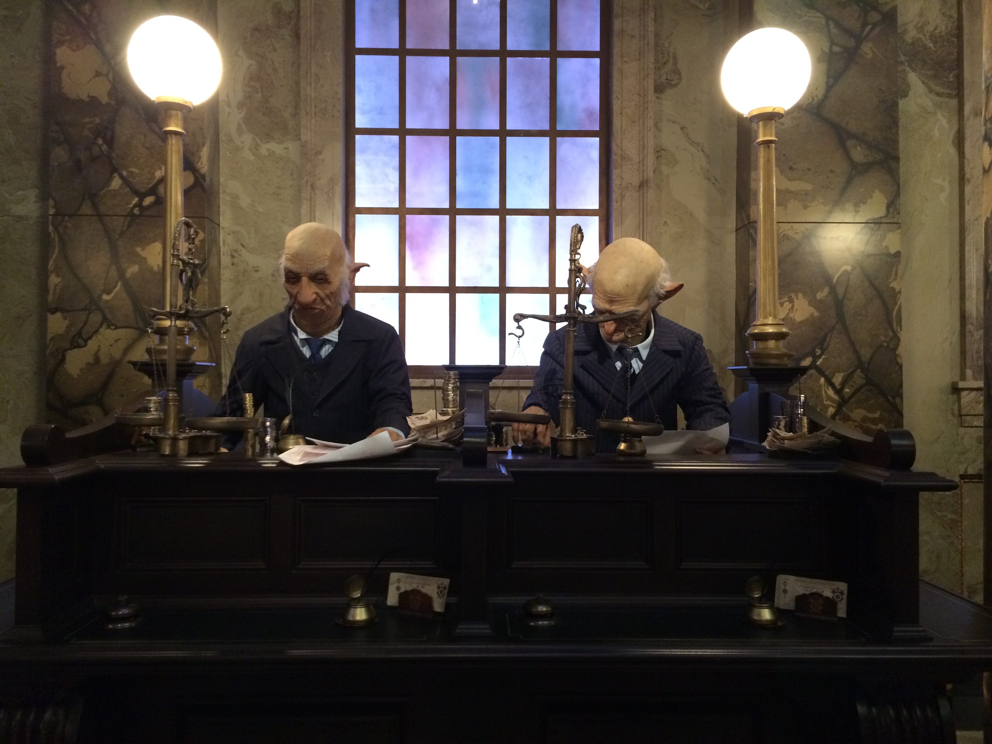 The inside of the bank is just as awe-inspiring as the scenery outside. From the moment you step inside, you are in an amazing lobby. The goblins are hard at work and will stare you down if you try to cross them. After the lobby, keep a look out for Ron, Hermoione, and Harry as they attempt to break into Gringotts to steal one of the horcruxes from Bellatrix Lestrange’s vault.