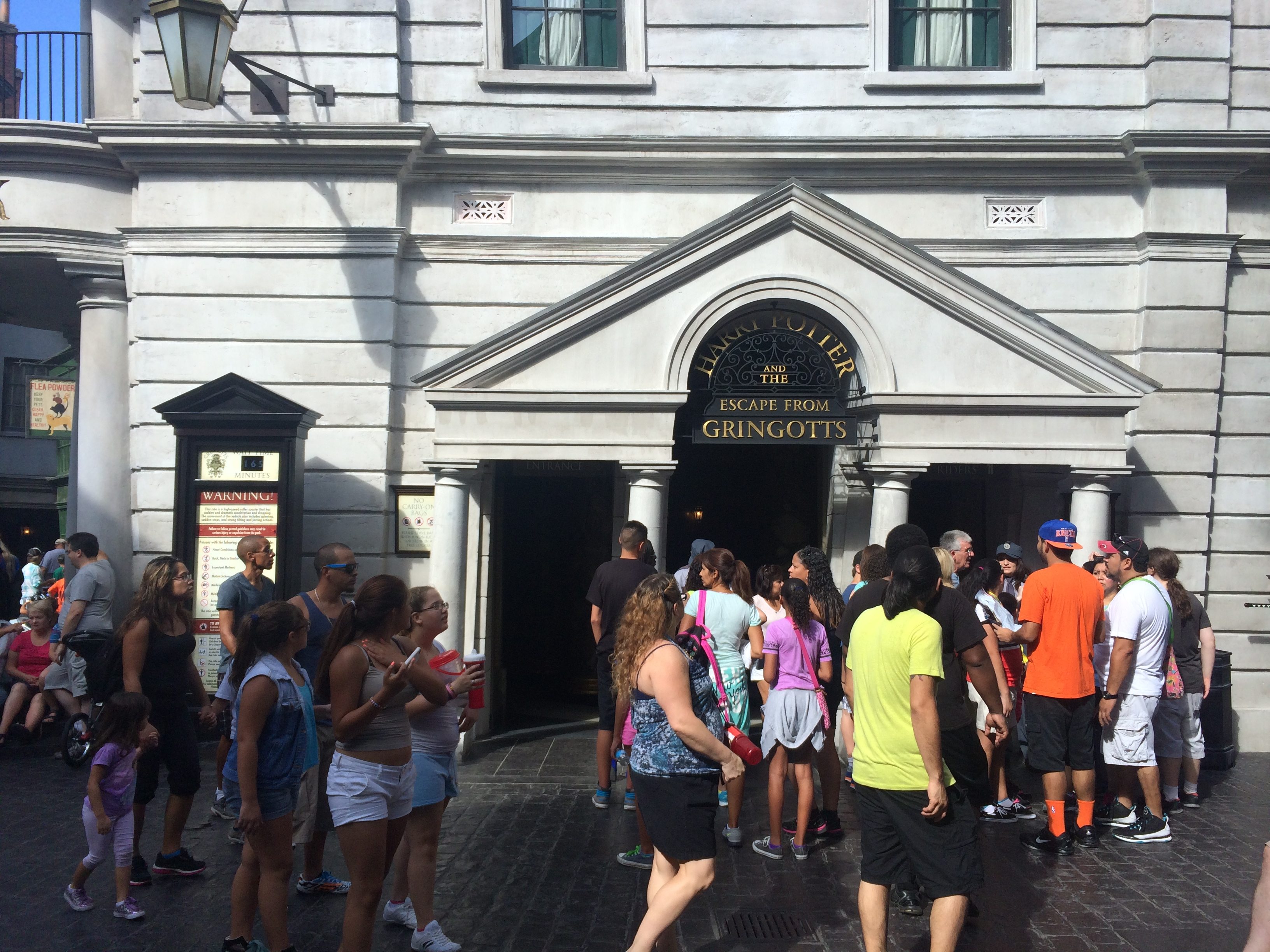 A few words of advice. If you plan on riding Escape from Gringotts, get there first thing. Matter of fact, arrive to the park before it opens so you can rush through the gates and into Diagon Alley. I arrived in the park a little after it opened and the wait time was already up to three hours. Later in the day, it dropped to 2 hours and 40 minutes and in my three visits to Diagon Alley so far, that’s the shortest I’ve seen the line get.