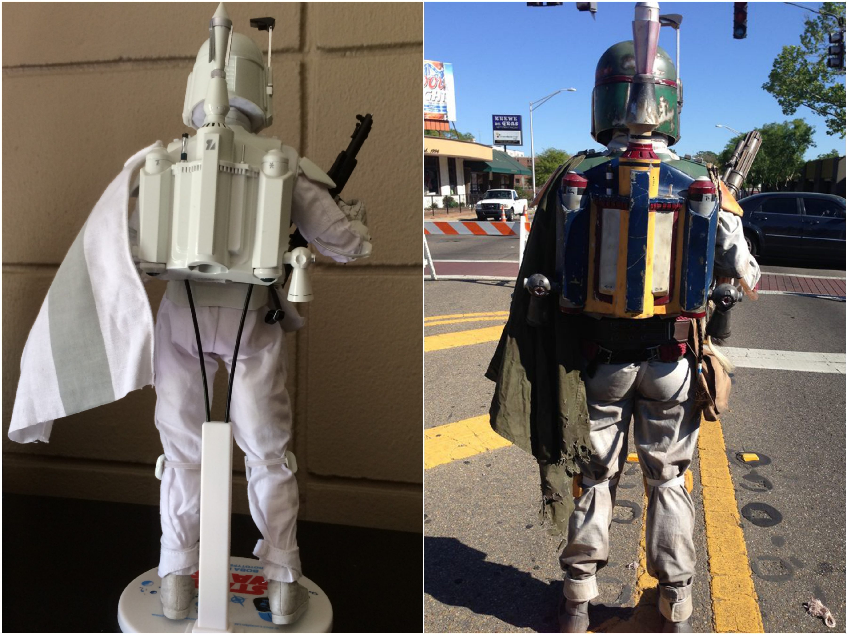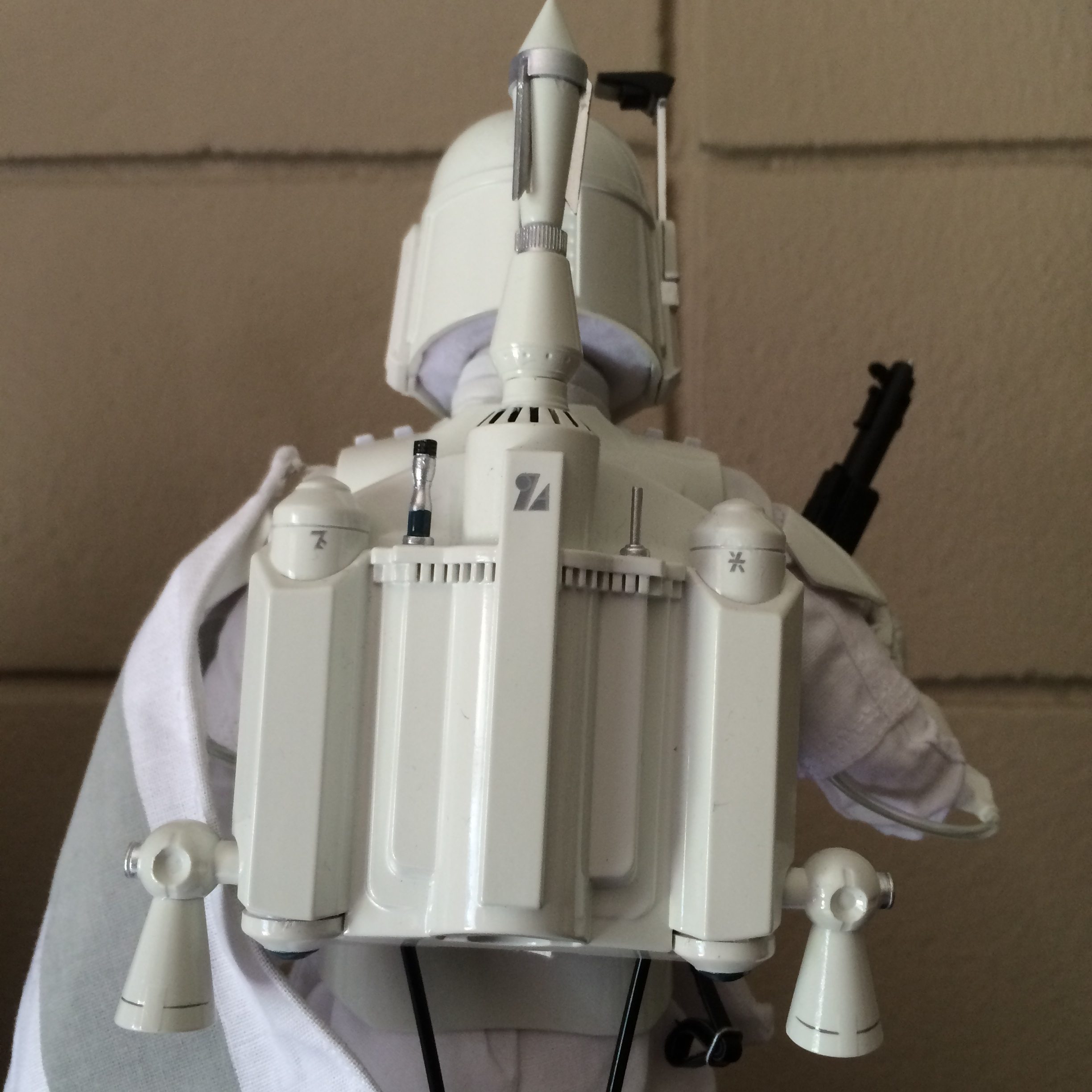 Looking at the figure and pictures of a fellow trooper’s 501st Legion-approved Boba Fett, I’ve noticed a few differences between the movie version and the prototype: