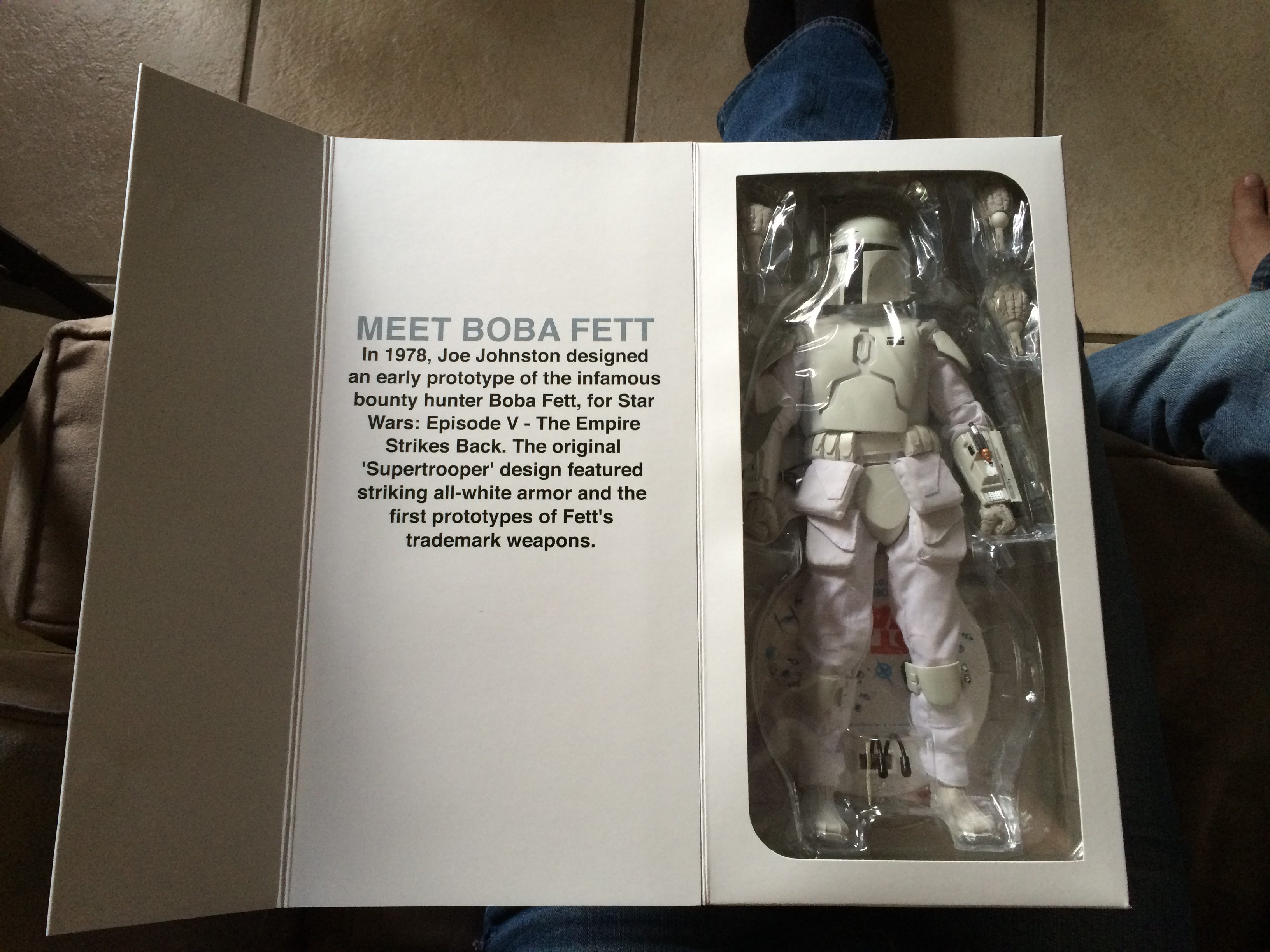 hunter Boba Fett, for Star Wars: Episode V – The Empire Strikes Back. The original ‘Supertrooper’ design featured striking all-white armor and the first prototypes of Fett’s trademark weapons.Sideshow Collectibles proudly presents the Boba Fett (Prototype Armor)