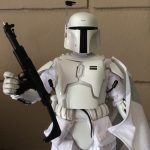Nope. And that’s exactly how he was supposed to look. Snowy white armor and flight suit with not a drip of color to his name. Actually, he wasn’t supposed to have a name either. Boba Fett is the child of the original idea Lucas had for Supertroopers. Eventually they decided to take the idea of a bunch of Supertroopers and turn it into one really awesome character.