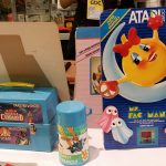 Finally the exhibit featured cases of Atari memorabilia, including t-shirts, golf balls, stickers, Frisbees, and more.