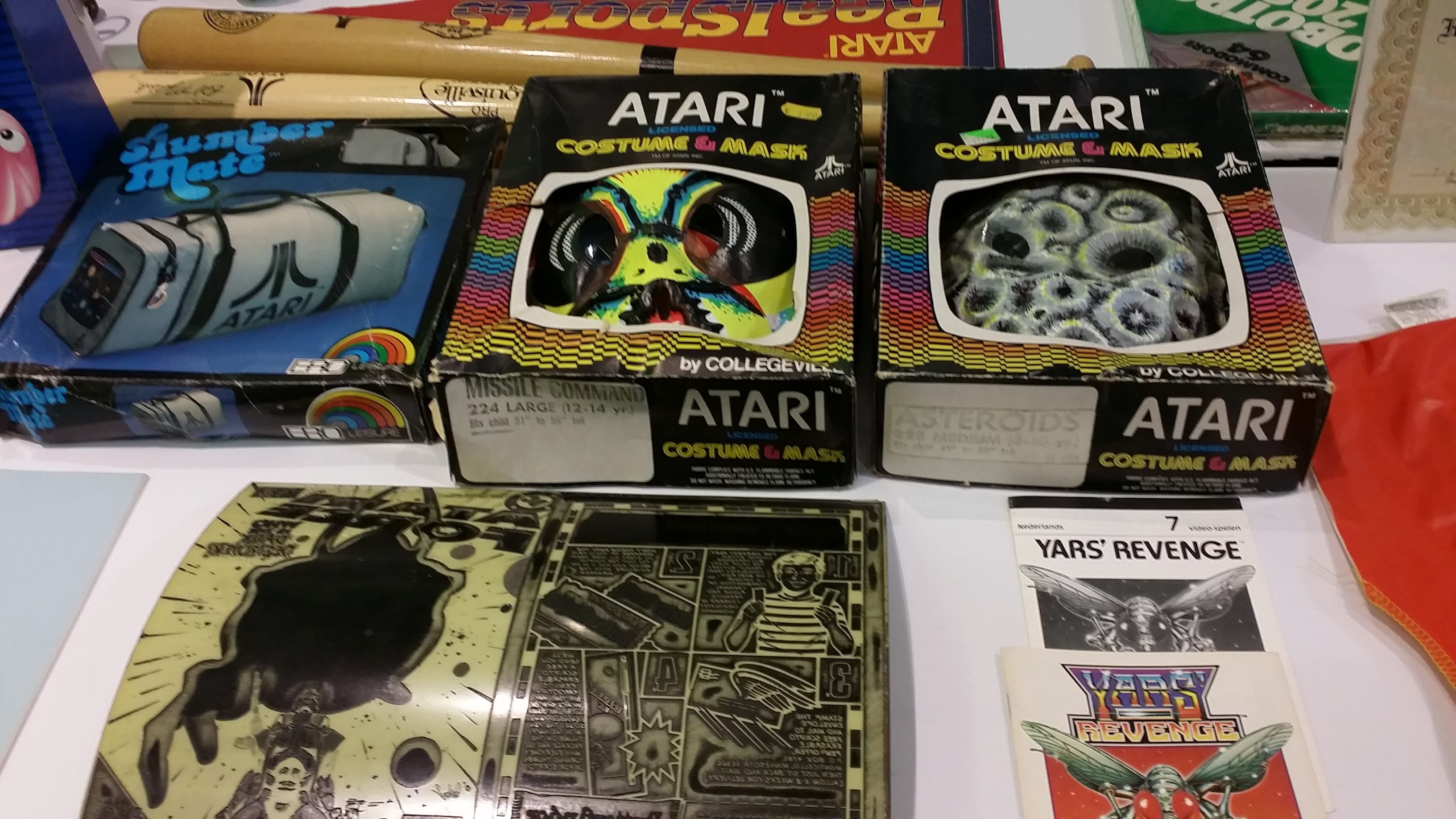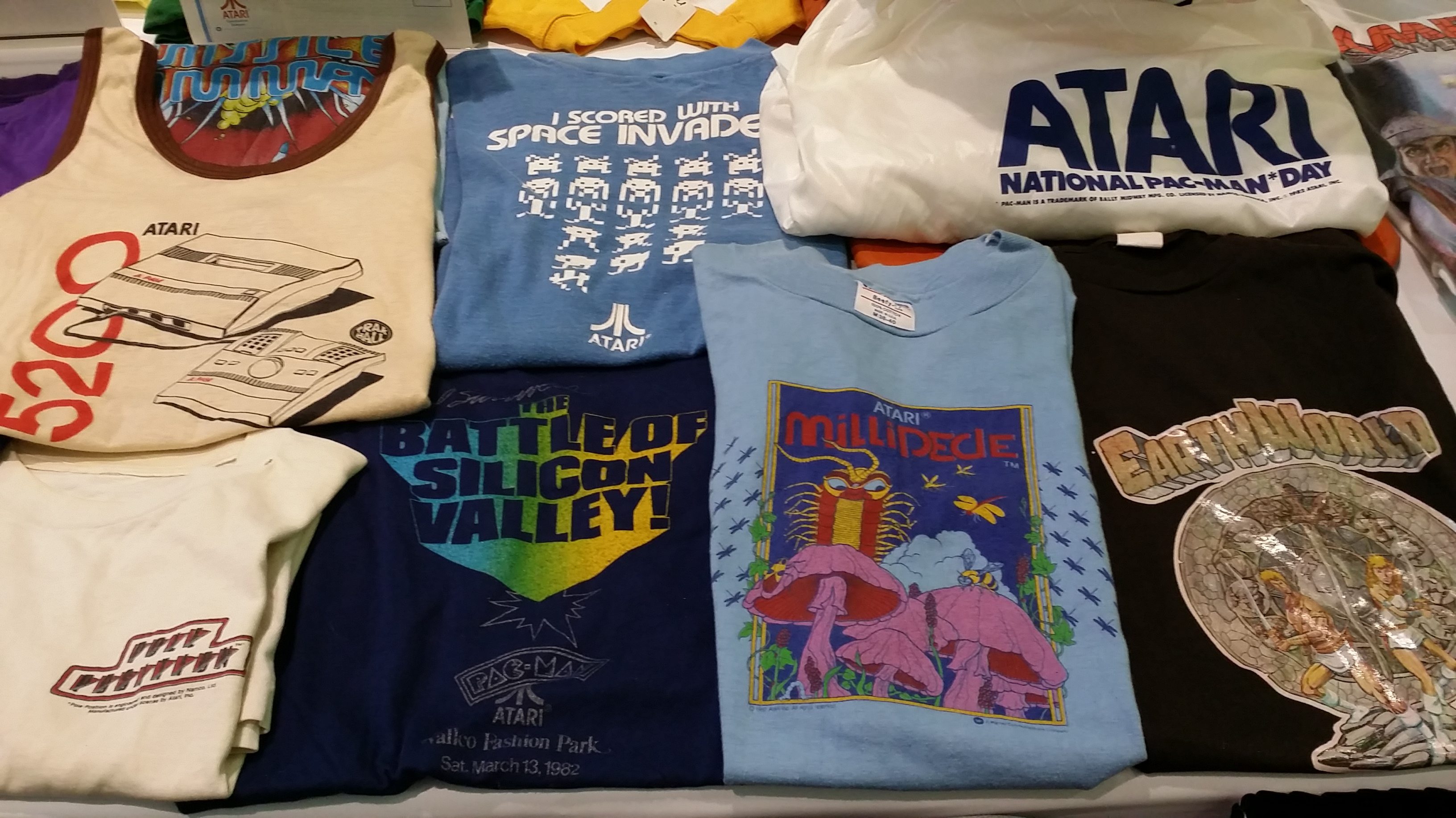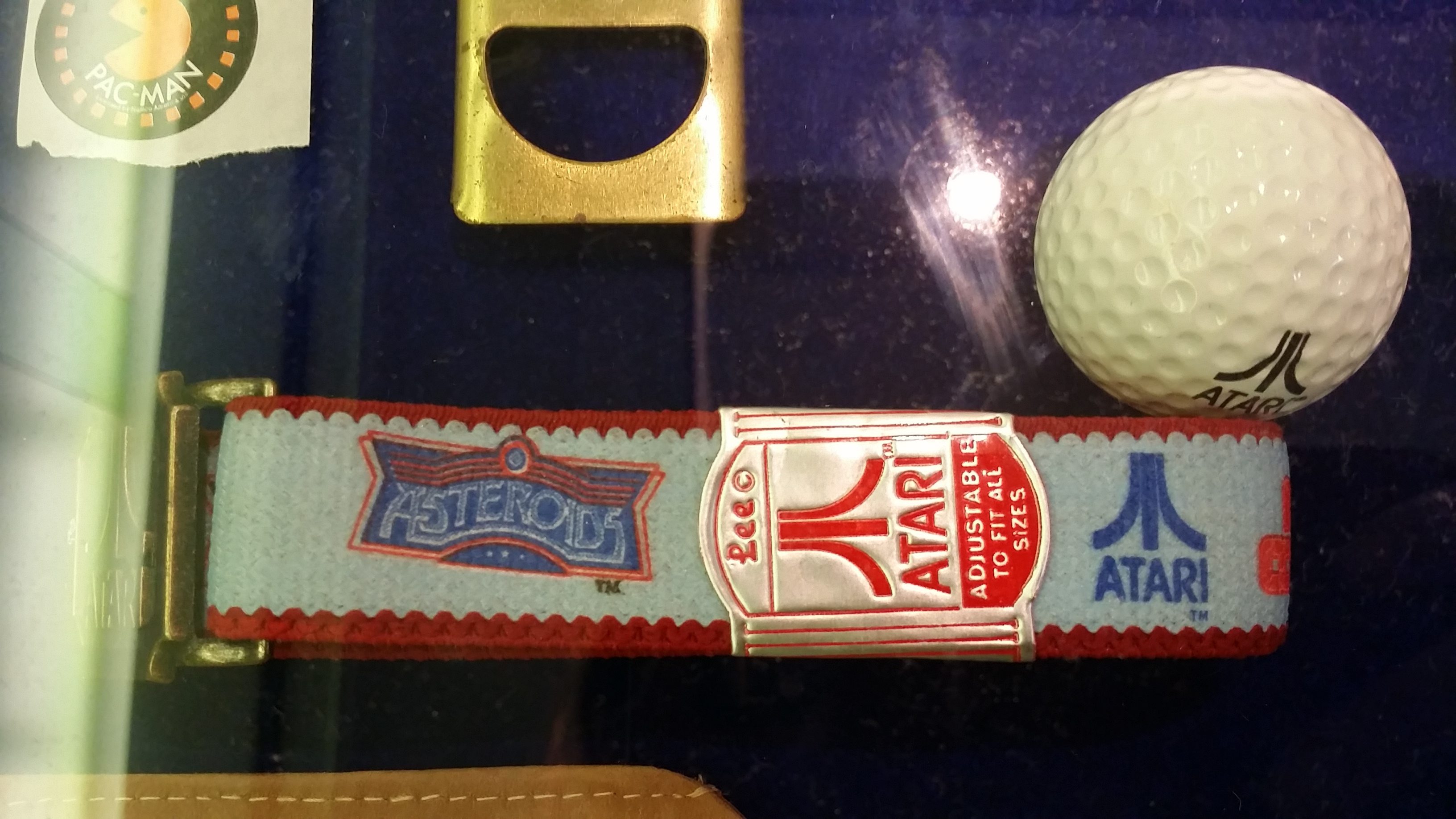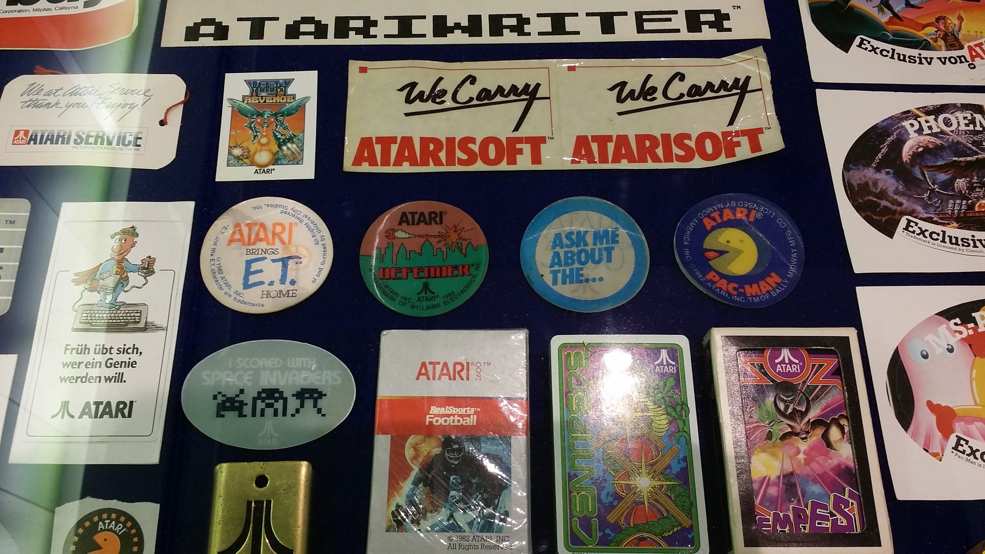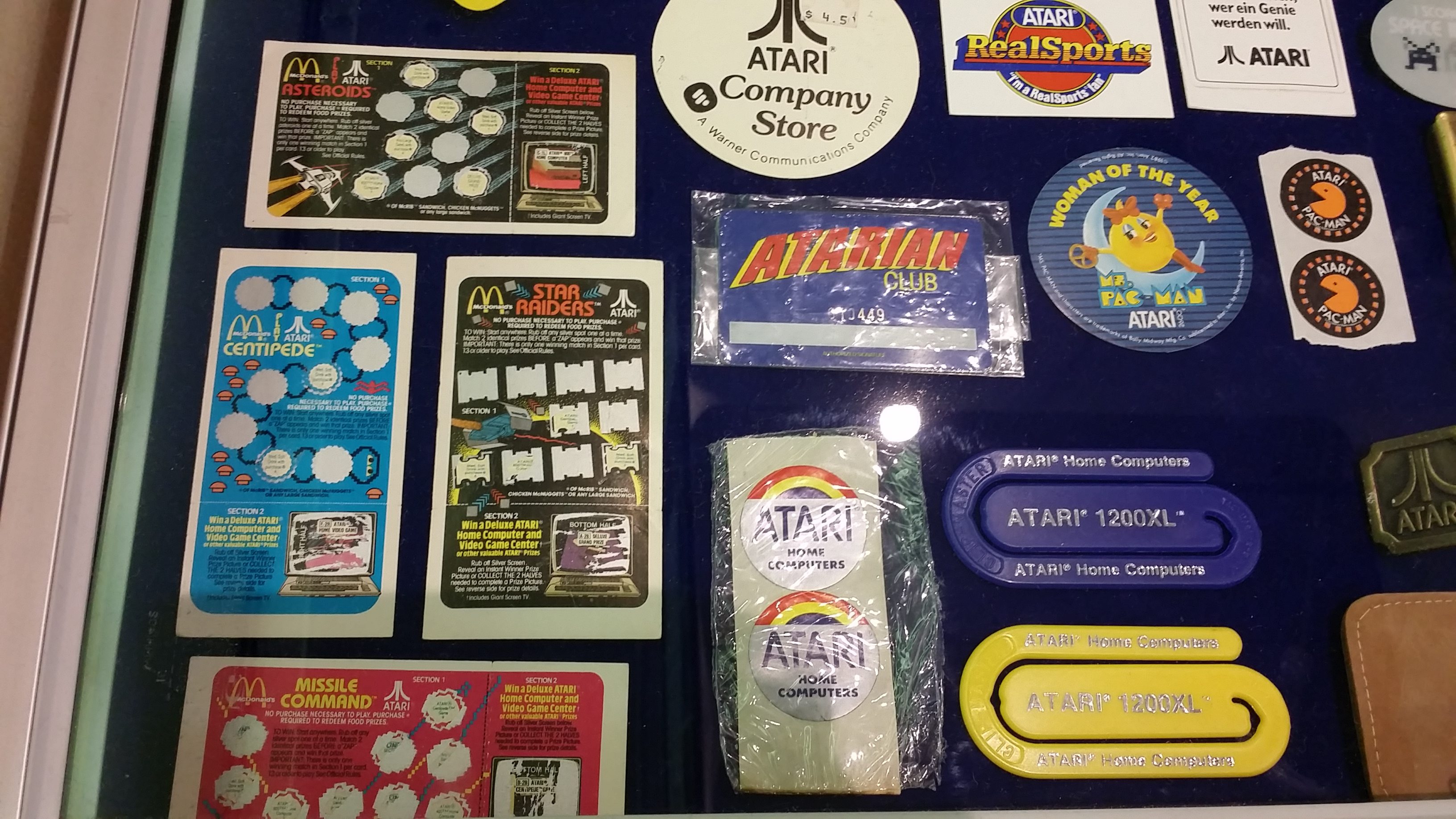 Finally the exhibit featured cases of Atari memorabilia, including t-shirts, golf balls, stickers, Frisbees, and more.