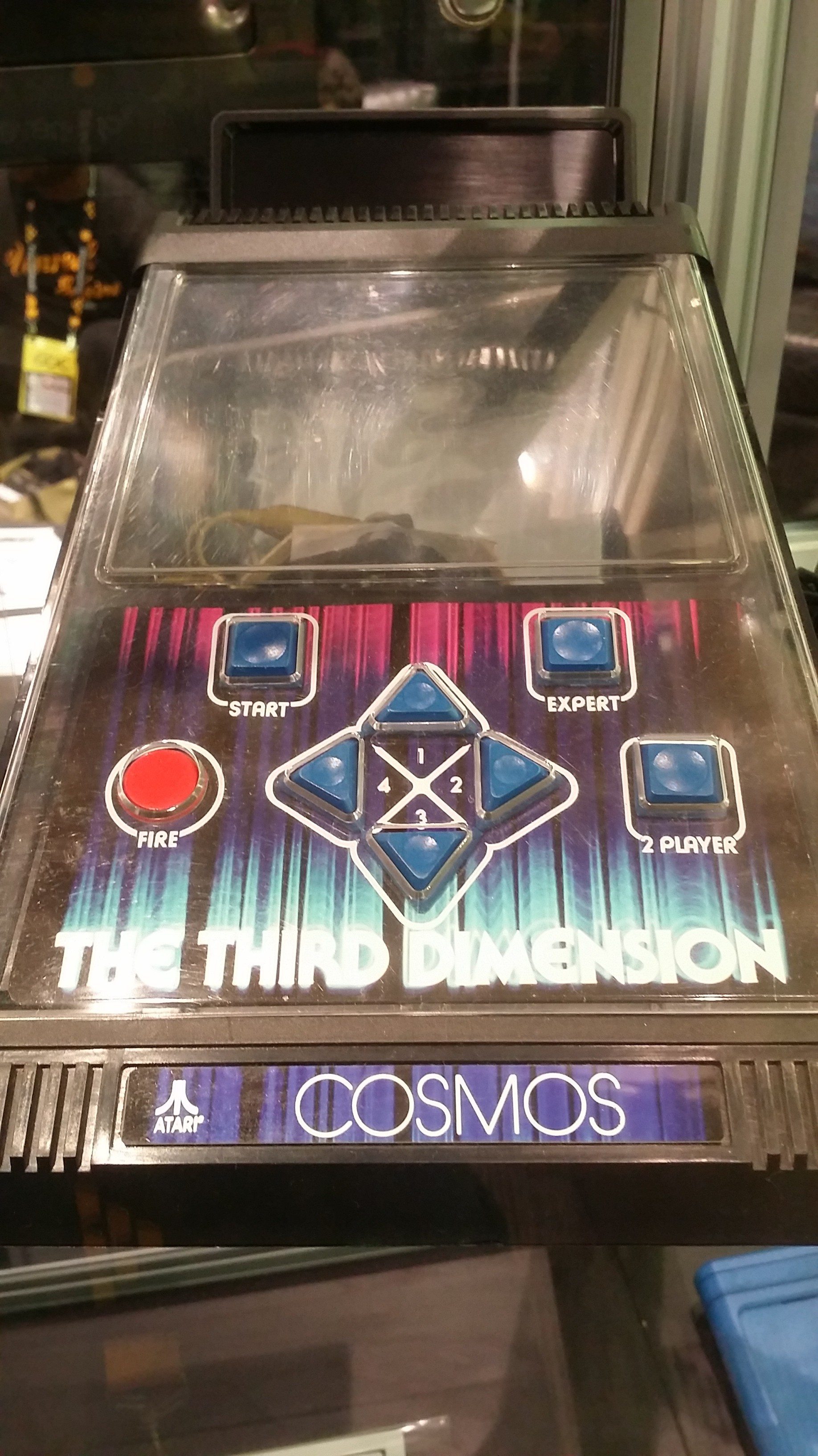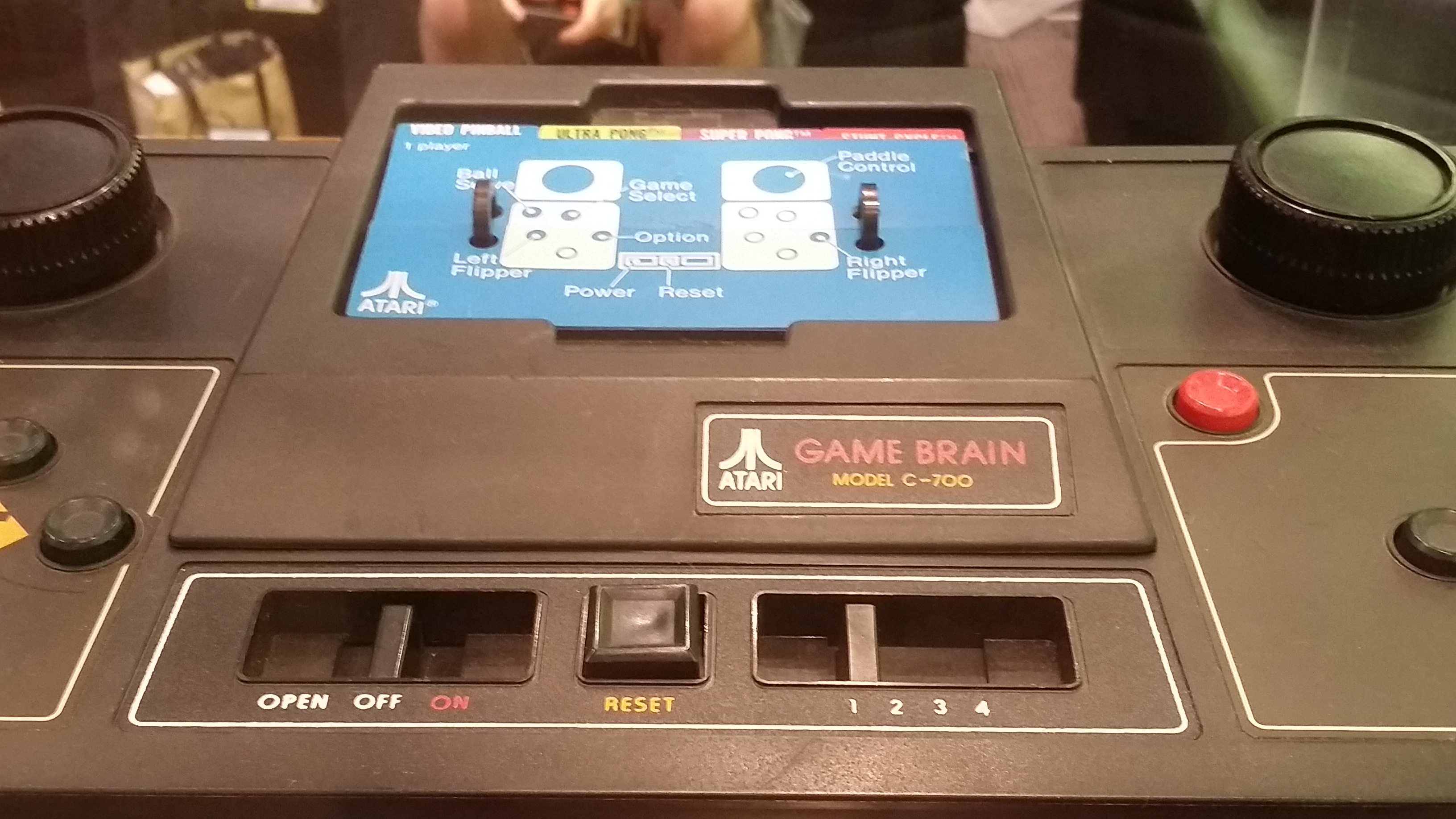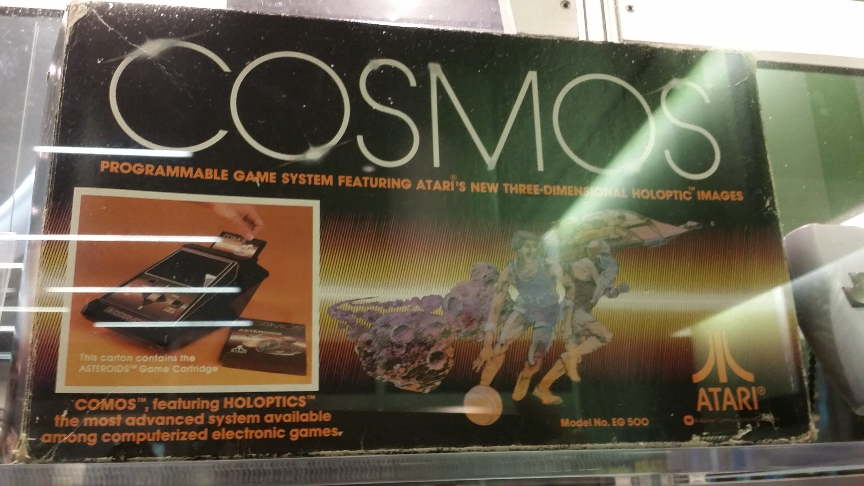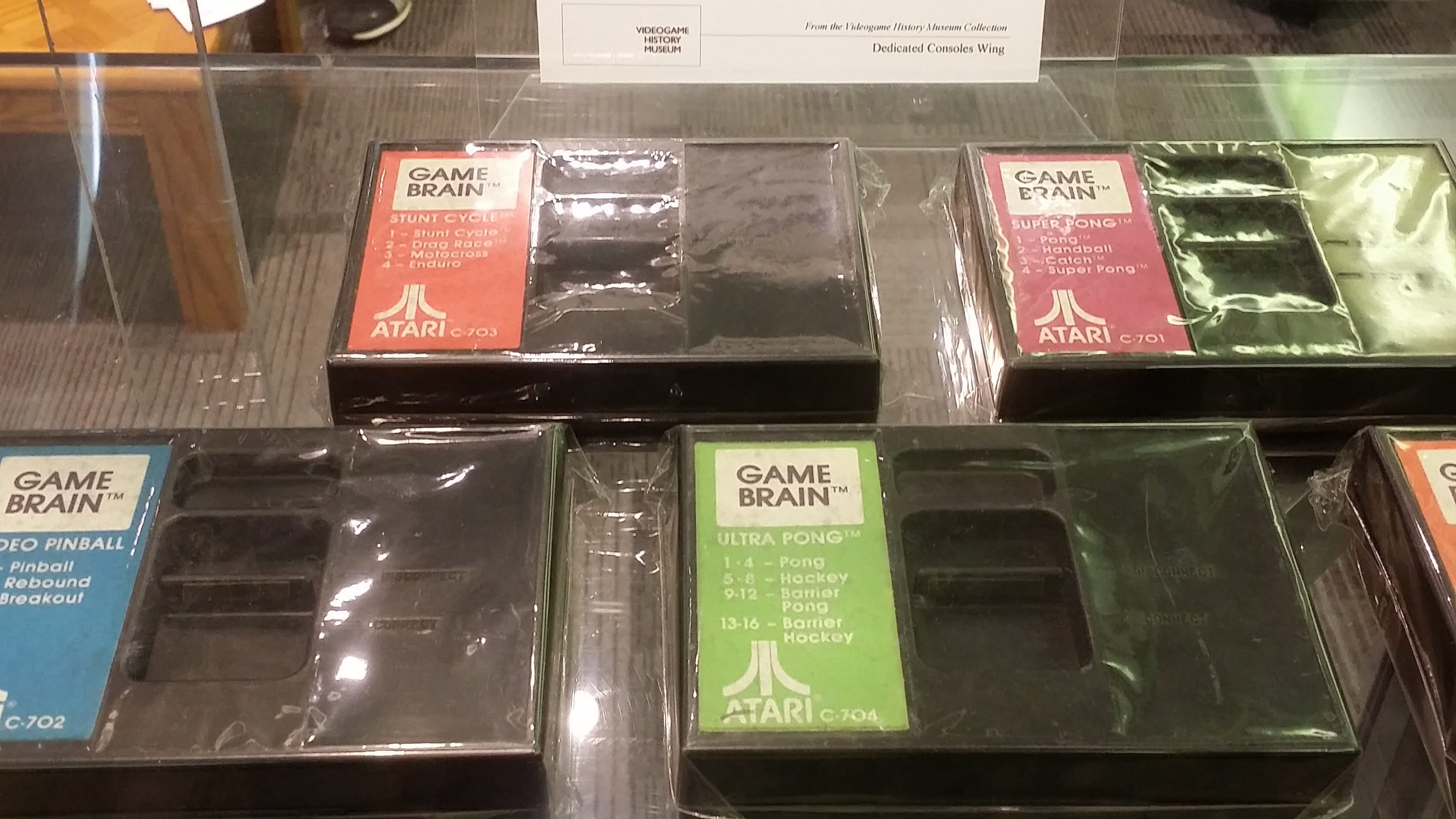 The Museum’s Atari exhibit includes not just that 2600 system, but many example systems from the company, including systems like the Touch Me, a handheld game system that was the inspiration for Ralph Baer to create Simon. Other systems and games on display were never publicly released, such as Game Brain, a cartridge-based prototype system for which only five cartridges were ever made, and Atari Cosmos, the result of Atari buying many holography patents to create a hologram-based game system.