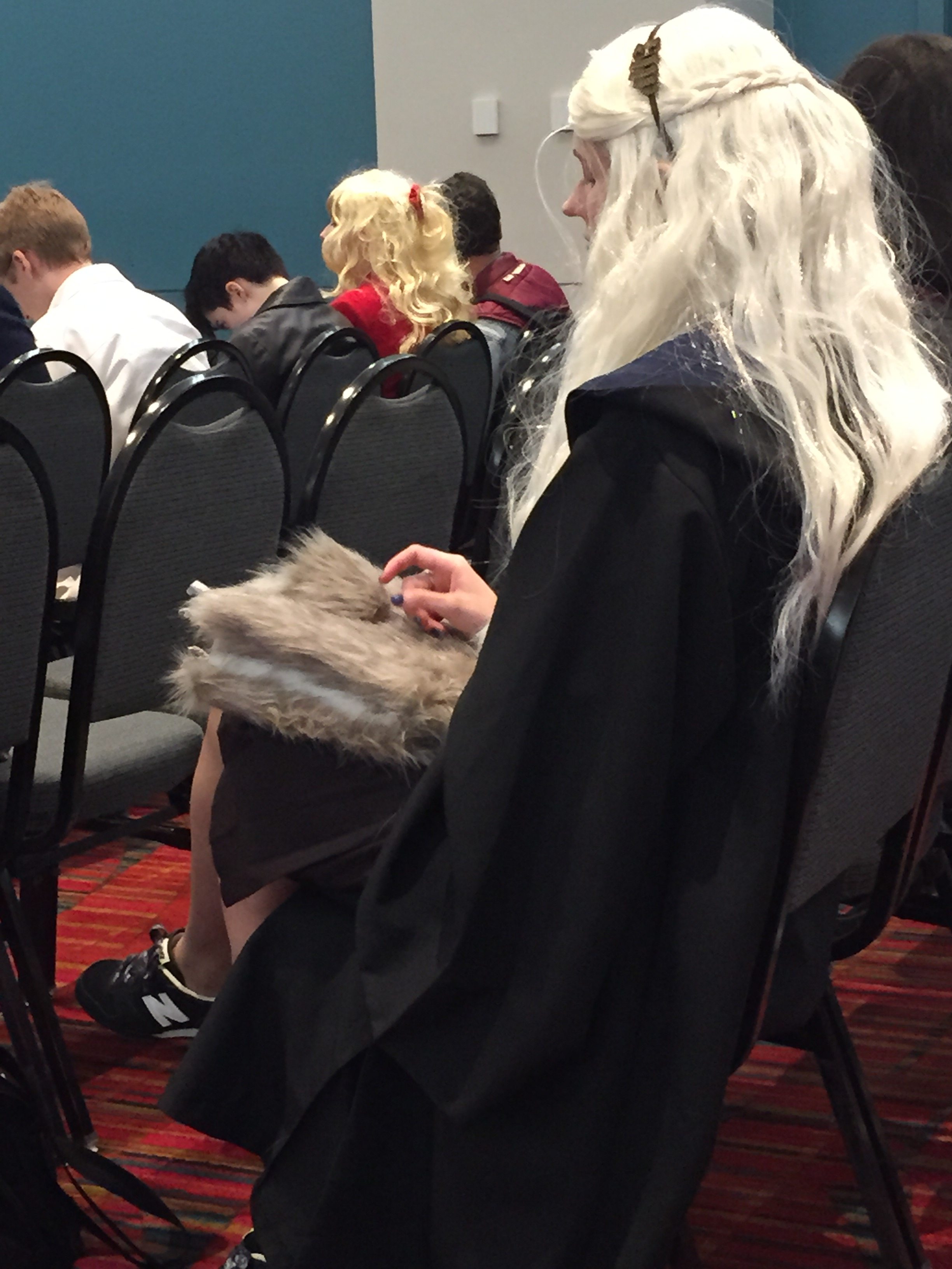 But you can see the range of fandoms in these cosplay photos. Not gotten but wish I had: the Deadpool family (Dad, Mom, toddler son), the Wayne Parents (Thomas & Martha Wayne dressed up formally looking for Batman cosplayers to collapse in front of…), Batwoman and Maggie Sawyer, and too many video game/anime characters to count.