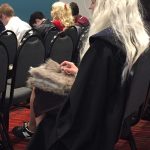 I’m never sure how quite to describe this con but, basically, it’s not so much a con that you attend to meet creators, though some of that happens. Instead, it’s primarily of social event where people go to hang out with others while attending cool panels, the Nerd Prom, and the Cosplay Death Match. Last year, Bill Nye won. This year, it was an awesome, on-stilts Jack Skellington.