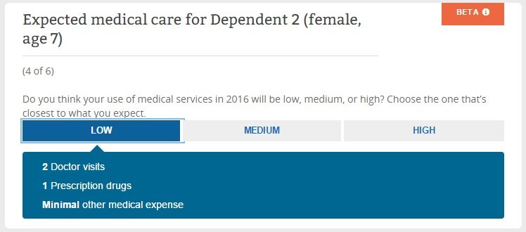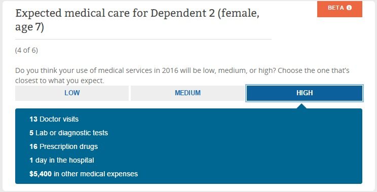 I decided that I needed to look at the full deductible as well as the out-of-pocket maximum (OOP) to give me a better idea of the right plan. I also ran the numbers twice–once assuming medium use for everyone and once assuming high use by this child:
