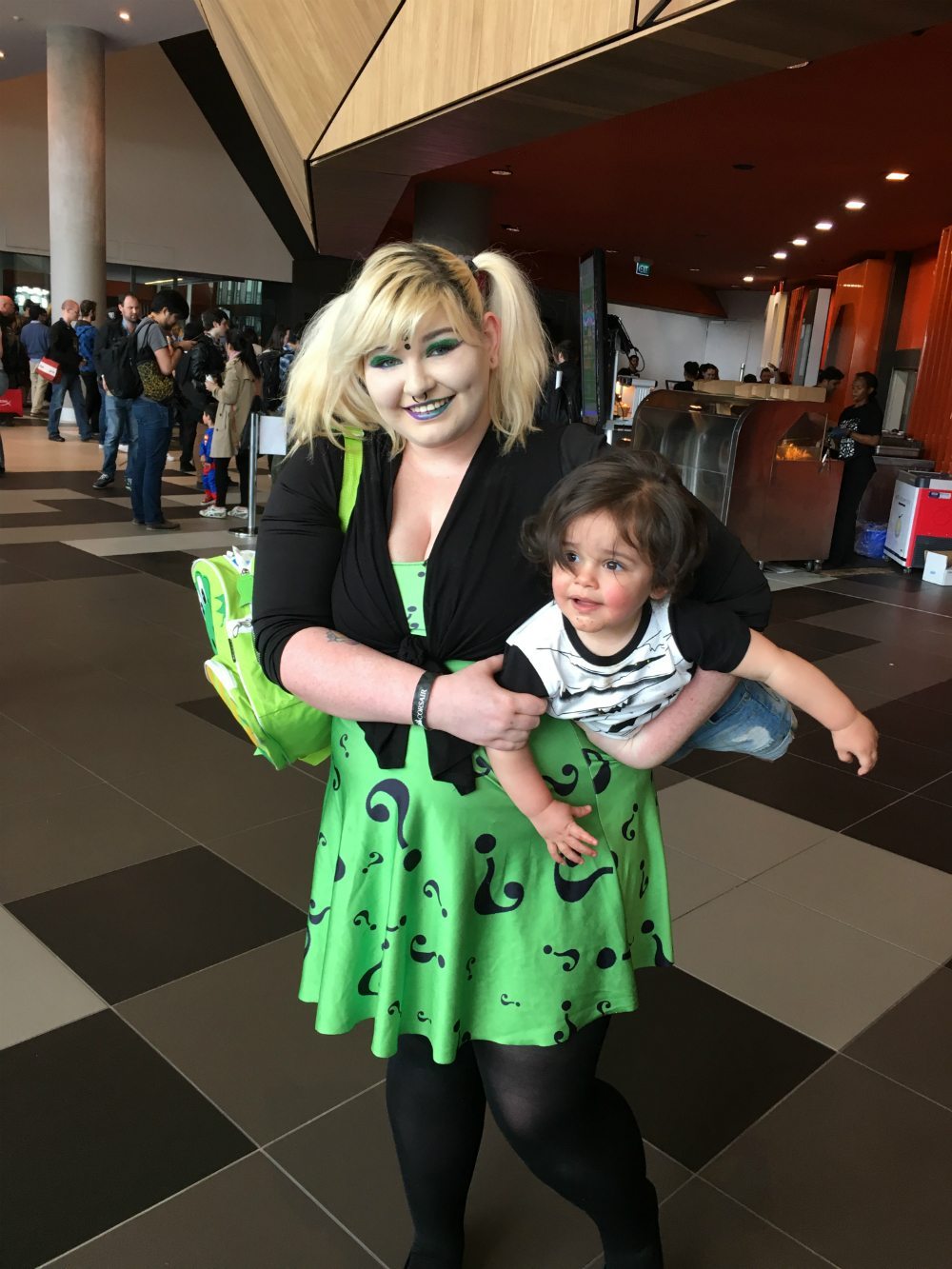 Well, I could have—except for her adorable Riddler cosplay; and her adorable son hanging under one arm.