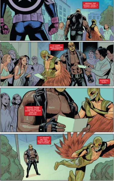 When change seems unattainable or, worse, things to be slipping backward, how to we persist? How do we continue to strive? How do we continue to fight? When, like Sam Wilson, we’ve tried to be a hero to those who hate us, kept hold of the Shield despite a constant assault demanding we give it up, how do we find the strength to take it up yet again? When, like Rage, words have failed us and action has failed us, how do we persist? When, like Joaquin, we risk everything for an altruistic mission and find ourselves in the crosshairs of people who hate without understanding, how do we continue to hope?