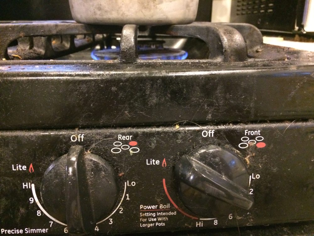 The terrible kitchen you see in that picture? That’s my terrible kitchen. We live in a turn of the century rental we thought was charming four years ago and which we’re now extremely glad we don’t own. We’re grateful the washer and dryer aren’t in our creepy basement but they do take up a third of the room. We have no pantry to speak of. Our dishwasher leaks and I have to run bleach through it periodically to get rid of the mold. Our oven door is held together with a zip tie because the handle broke a year ago and the landlord hasn’t fixed it yet. The cabinets are peeling, the floor is ugly as hell, and there’s only so much I can do to clean the place or make it look any better.