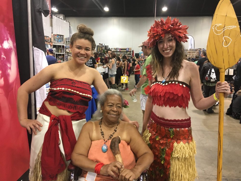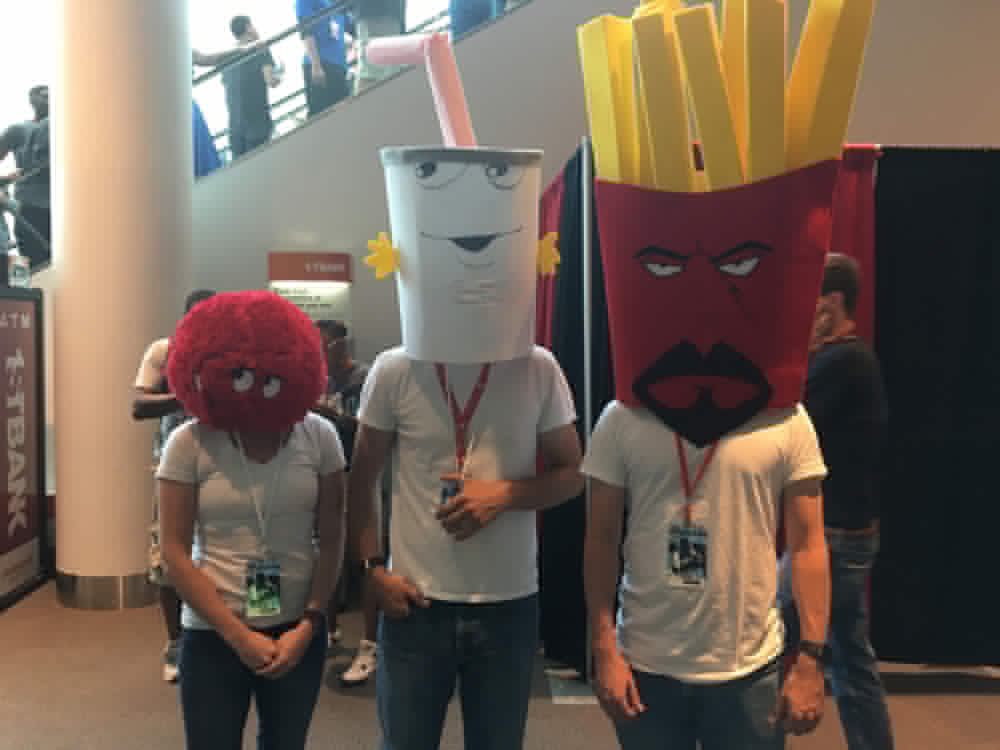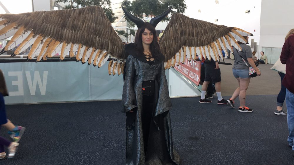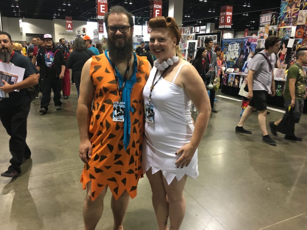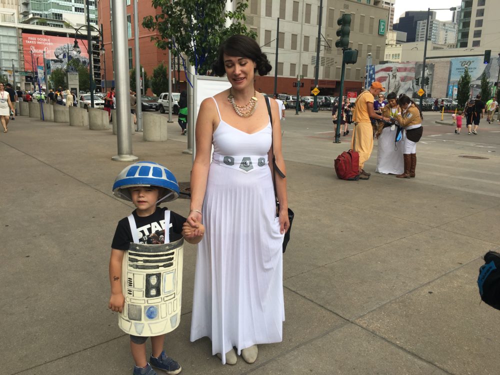 A glimpse of what’s to come in Season 7? Daenerys Targaryen and Jon Snow have twin dragon daughters, as cute as can be! Image credit: Patricia VollmerThis Moana family got a lot of attention at this year’s DCC. The girls’ grandmother was wheelchair-bound but that didn’t stop her from enjoying a very well-done Gramma Tala, complete with the pendant and walking stick. Image credit: Patricia VollmerI saw this Mario Kart family while I was waiting (and waiting…and waiting…and waiting) in line for lunch on Saturday. Image credit: Patricia VollmerTo be honest, I’m not sure if this is a family, technically. But my family loves Aqua Teen Hunger Force. Perhaps in honor of Dana Snyder (voice of Master Shake) and Carey Means (Frylock) having a panel during DCC, this group did a great job as Meatwad, Master Shake, and Frylock. Well done! Image credit: Patricia VollmerI caught this young husband/wife couple just as I was leaving the Colorado Convention Center on Saturday. They were so adorable. I asked if there was a Pebbles and Wilma’s answer was “Not yet!”. Image credit: Patricia VollmerThis little guy is four years old. He wanted to be R2D2 and Mom helped make it happen. This costume was what appeared to be a 12″ concrete mold tube and a lightweight foam sphere. I was reminded of the trash-can R2D2 costume I made for my almost-4-year-old son in 2008. Image credit: Patricia VollmerThere were numerous Ricks and Mortys at this year’s DCC. This father/son duo did a very good job with details such as Rick’s blue uni-brow and dribble under the chin. Image credit: Patricia VollmerThis 15-year-old designed and constructed most of this pneumatic Maleficent costume by herself. I talked to her father, who explained to me some of the intricacies of the costume, such as the real feathers on the wings. I’m sorry I couldn’t catch a video of the wings contracting and expanding. Image credit: Patricia VollmerNot sure if this is a family either, but it was worth photographing. It goes without saying that there were dozens-upon-dozens of Wonder Women, most of which were wearing the Gal Gadot-style of costume. But there were also several Lynda Carter-types, and other versions from the various comic book artist renditions. But enough about Wonder Woman: CHECK OUT ELASTICGIRL!!!! This young lady clearly looked the part with some very long legs. Unfortunately, according to this young lady, she had several folks ask her who she was portraying. A truly unique cosplay ideal and incredibly well-done. Image credit: Patricia VollmerSo let me sneak in this one: my own family’s cosplay! I don’t think it needs explaining. My husband had wanted to be Duff Man since meeting up with one at Dragon*Con in 2012. Pro tip: Break in your shoes before walking 18,000 steps in Colorado Convention Center. My feet were hamburger at the end of the day in those red leather Marge shoes!