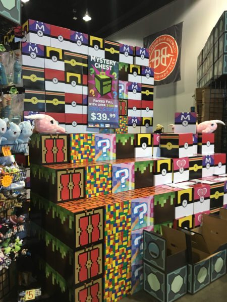“Mystery Boxes,” which have gained popularity just over the past two years or so, completely dominated the vendor scene. We found one shop, Toynk, out of the Chicago area, that seemed to ONLY be selling mystery boxes, of over a dozen sizes. It became a mission for my youngest son: he browsed several vendors in an attempt to make an educated decision on which mystery box to choose. He chose a middle-of-the-road size/price/quality box. Among other things, it included several Doctor Who gift items, a rather adult Halloween costume, a Portal-themed Rubik’s cube, and a stuffed talking Kylo Ren. My son was disappointed in the selection, but I’m pretty sure he understands that that’s the point of it being a “mystery box.”