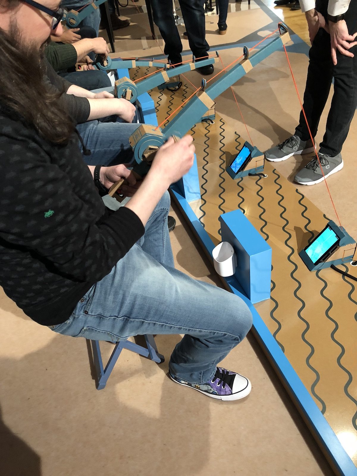 The Piano not only has regular notes but the assembled cardboard screws allow users to switch the sounds to ghost or kitten mode. If you ever wanted to hear what piano notes sounded like in kitten, here’s your chance. This is not the kind of thing that would feel the same without the tactile component of the cardboard piano–it has to work, forgive me, in concert with the software. The same goes for the fishing rod, which interacts with the screen as you catch fish from the “ocean.” (The Switch display mounted in the cardboard “ocean” standing in for water.)