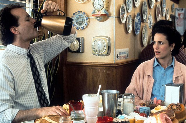 Movie summary (with mild spoilers, but hey, the movie is 25 years old!): Phil Connors is a television weathercaster who traveled to Punxsutawney, Pennsylvania to cover their famous groundhog’s prediction. Phil isn’t the nicest person, it’s evident that he has quite the selfish streak: he doesn’t’ care for his viewers, and simply wants to cover the news story and be on his way back to Pittsburgh before a winter storm hits. However, the winter storm hits in a way that Connors didn’t predict; he and his crew end up stuck in the town for the night. Phil awakens the next morning to the same day (February 2nd), and he has to live the same day over and over again. There’s this evolution that occurs, from Phil getting angry and frustrated with the same day over and over again, to Phil attempting to seduce Rita, the producer with whom he is smitten. His initial attempts at wooing Rita fail. Phil realizes he can get away with numerous crimes without consequence, then he gets depressed and attempts suicide in several different ways. Finally, Phil attempts to simply be a better person. Once he has the “perfect” day, being completely selfless, kind, and respectful, particularly to Rita, the cycle is broken.