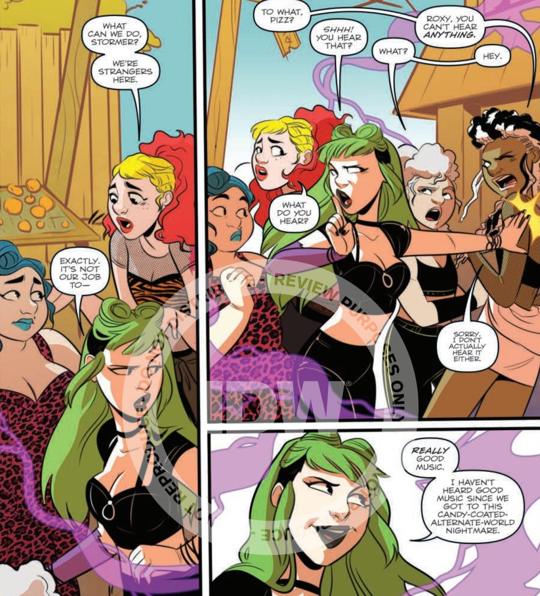 Please don’t mistake my criticism for dislike. There are some moments here I really love—the reunion between the Holograms and their dad, the sheer exasperation Pizzazz has regarding the secret of Jem, and the quick views that we get of what they refer to as Jemworld.