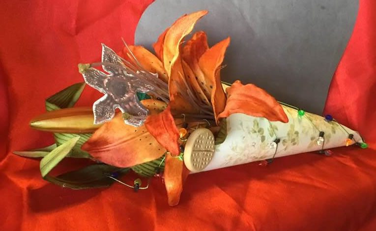- A paper cone made with scrapbook or wrapping paper resembling Joy’s flowered wallpaper (sans the “R.U.N.” graffiti)