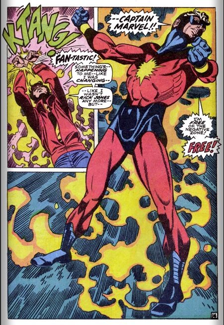 Later, he shared a body (it’s complicated) with Rick Jones, a former friend of Bruce Banner, former one-time sidekick to Captain America, and savior of humanity during the Kree-Skrull War. (Really. You can look it up.) When Rick banged his Nega-Bands together, he swapped places with Mar-Vell, who was floating around the Negative Zone. My first Captain Marvel comic was one that featured Rick and Mar-Vell doing the body swap.
