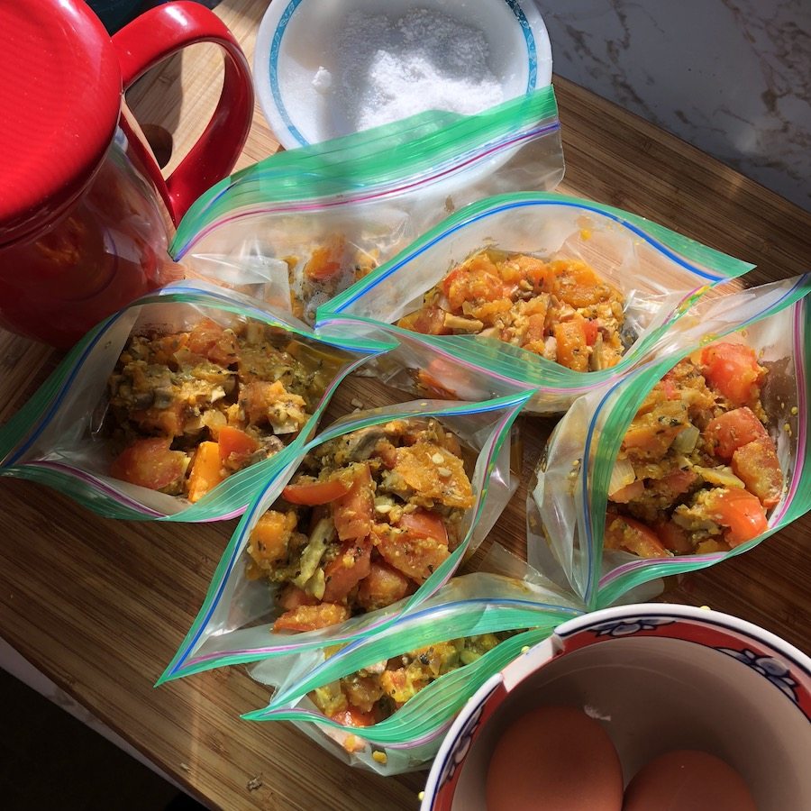 Omelet filling of LIES portioned perfectly with a whole serving of nutritious vegetables in every freezer bag.