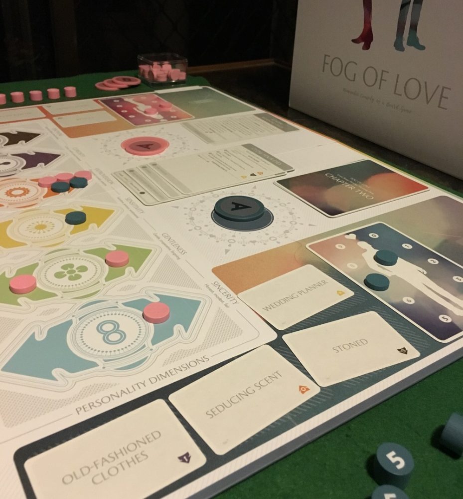 Starting with the obvious, Fog of Love is a brand new game released on Valentine’s Day, 2018. Mainly because the creators have a sense of humor. It is the result of a very successful Kickstarter campaign, as reviewed in great detail by GeekDad Jonathon Liu.