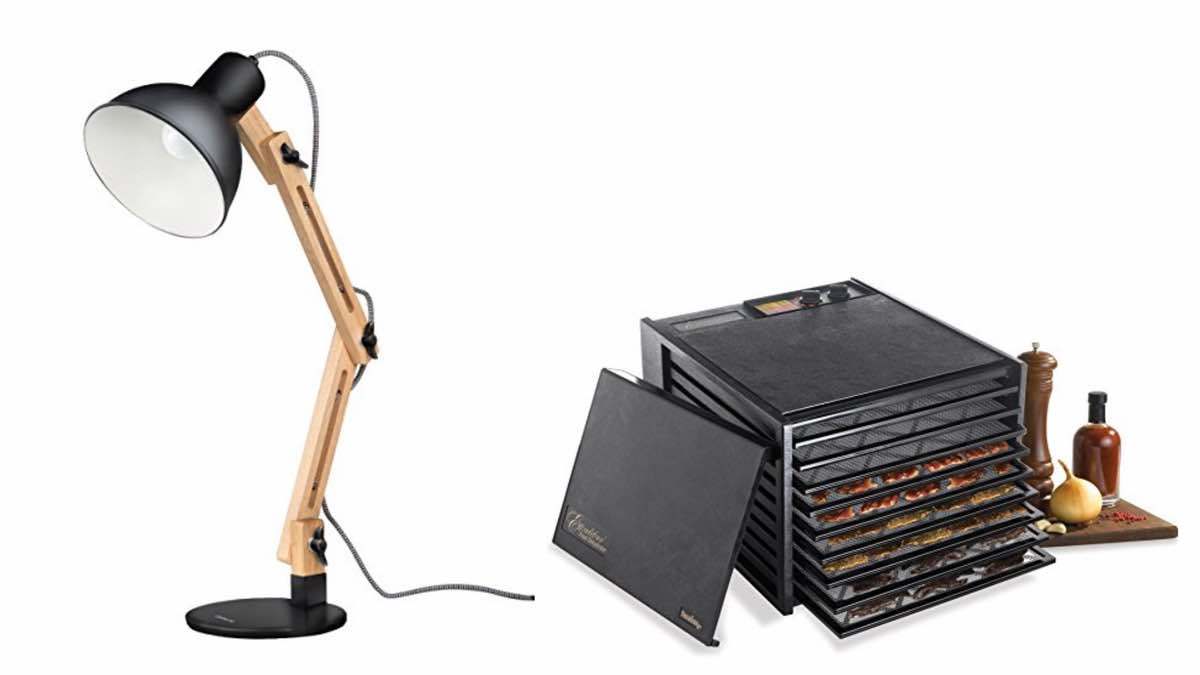 Geek Daily Deals – Update the look of your desk, table, or nightstand with this handsome adjustable lamp with an adjustable wood swing arm. Or become the master of healthy snacks for the whole family with a deal on this 9-tray electric food dehydrator.