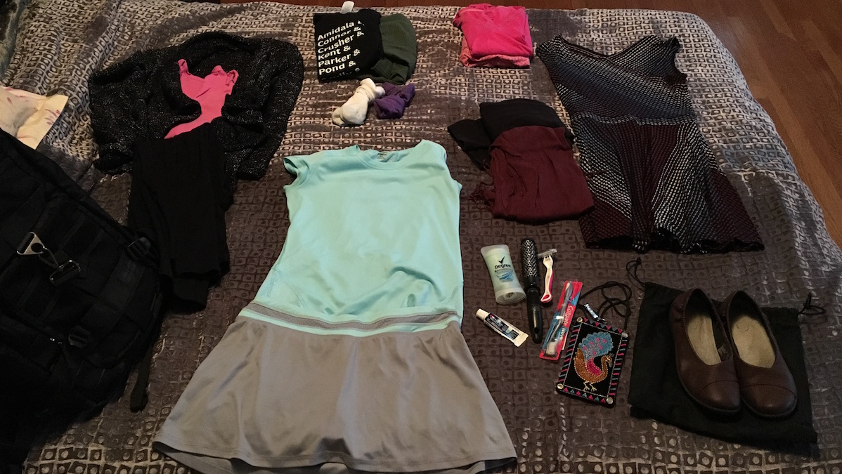 I wanted to see if I could take it for a weekend trip, perhaps to a writing conference or a Duran Duran concert. I laid out all my stuff, fit it all in, then went back to find a few more things. Note: I don’t wear makeup, so there may or may not have been sufficient room for that (but I bet there is).