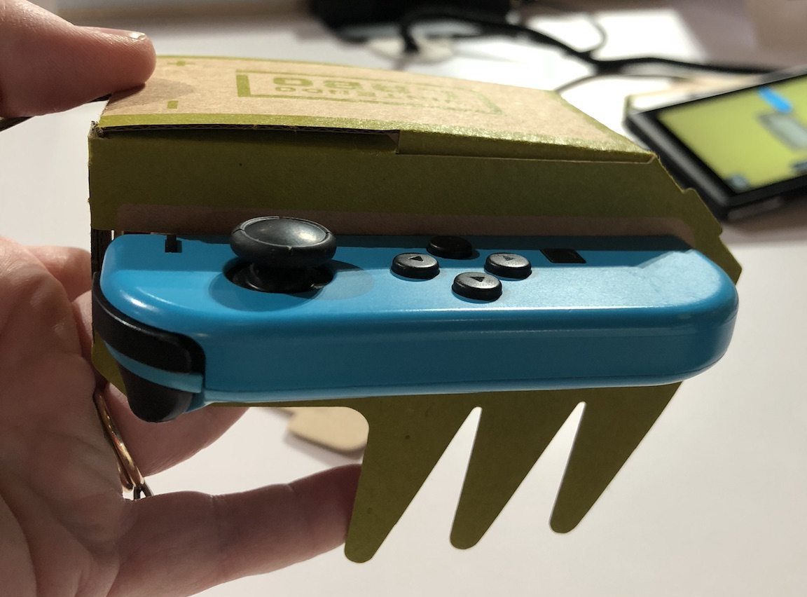 There are no written instructions. Instead, there are 3D instructions on the Switch touchscreen that allows back-tracking and fast – forward at will. The touchscreen allows you to manipulate the instructions and change the perspective, even flipping the image over. The instructions begin with a quick tutorial build of a joy-con controller holder. I recommend everyone do this their first time because it allows you to get used to the instructions and how the cardboard folding works. We backtracked several times during our test run.