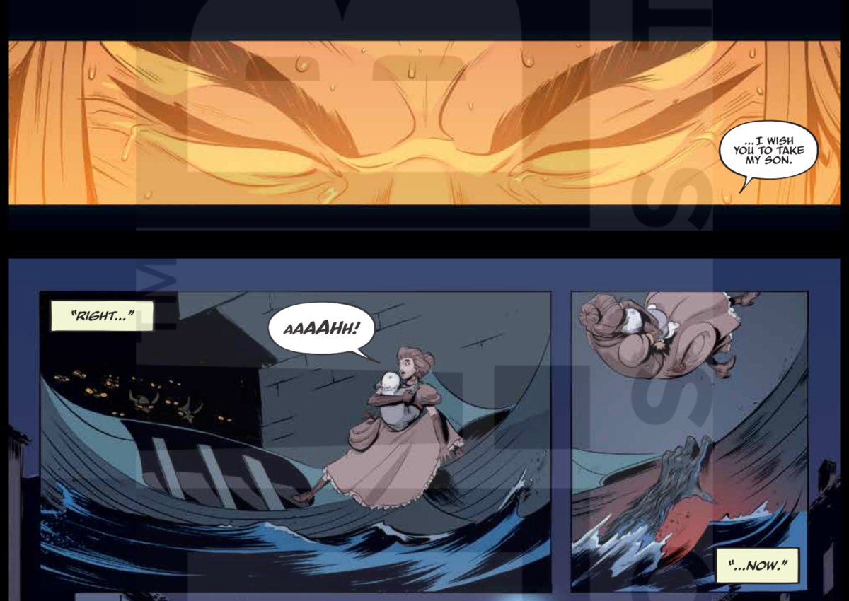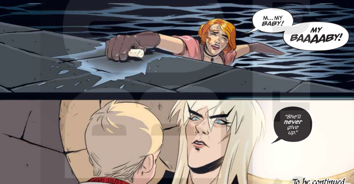The last page of issue 1 shows two images. Maria, gasping and crying out for her son – and Jareth repeating the words the goblin said to him back in the very beginning: “She’ll never give up.”