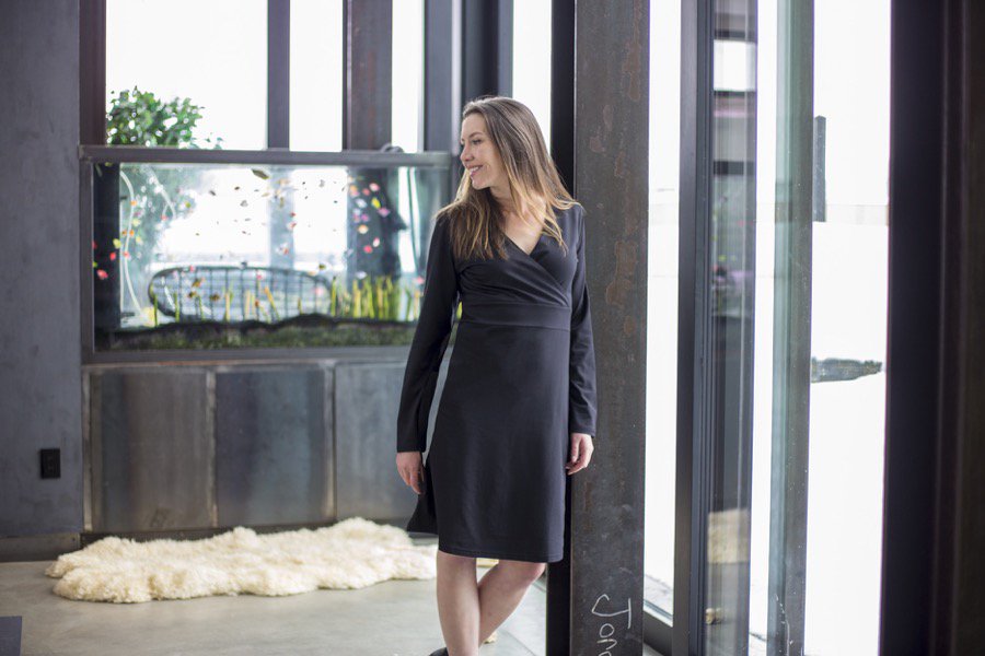 I tested out a black Daphne dress. The fabric’s outside has a very smooth, slippery feel, while the inside of the fabric, next to your skin, is very soft, the kind of soft that would clean your phone screen exceptionally well.