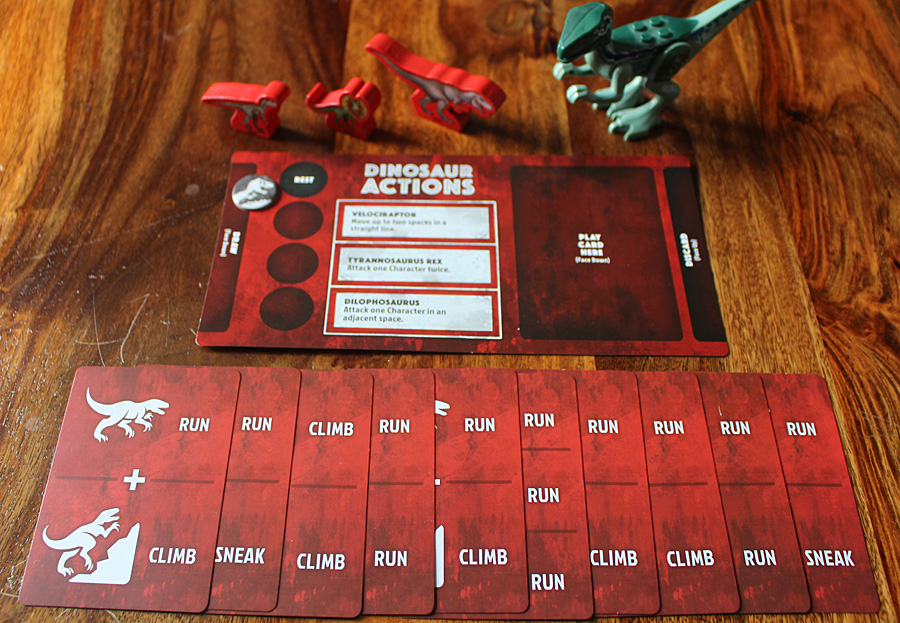 - Run – As with the Dinosaur version of this card, this allows the Character to move into an adjacent space as long as they do not cross a cliff or electric fence. Characters cannot move into a space containing a Dinosaur unless the Dinosaur is sneaking.