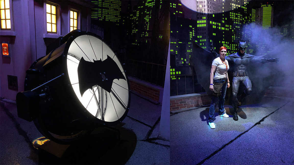 The Justice League: A Call To Heroes exhibit takes place in Metropolis and Gotham in a time when Lex Corp is up to no good. Each mission sets off a series of special effects from lights to smoke to some “heavy lifting” that add to the storytelling nature of the environment and make you part of the excitement.