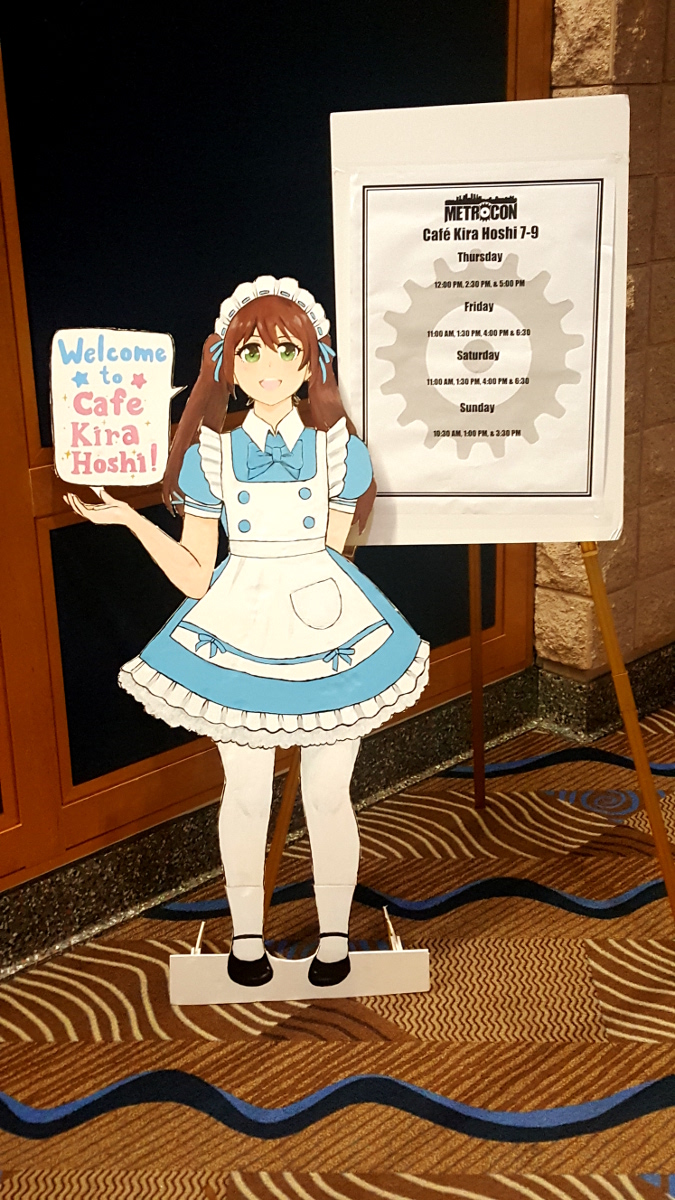 White stockings and lace. Immaculate petticoat and frilly pinafore. Perfectly pressed black trousers. Spotless tailcoat and fitted vests. Sweet smiles and innocent eyes everywhere. You have just entered Cafe Kira Hoshi, a maid cafe at Metrocon in Tampa, FL.